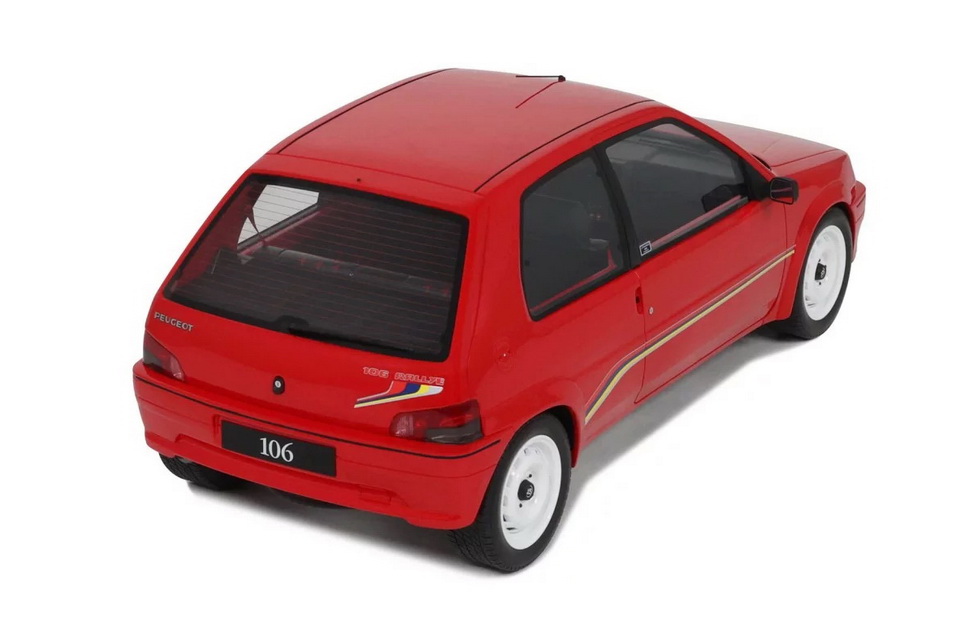 Peugeot 106 Phase 1 Rallye - rok výroby vozu: 1993 - výrobce modelu: OttO Mobile - měřítko: 1:12 - materiál: resin - barva: červená (Red P0KB) - limitovaná edice: 999ks - vydání modelu: prosinec 2025 - číslo produktu: G108 Téměř každý zná Peugeot 106: ať už to bylo tvoje první auto, auto souseda nebo rodičů – je to ten typ malé městské káry, která byla vidět úplně všude. Jeho verze „Rallye“ je ale mnohem vzácnější, vzniklo jí totiž jen asi 15 000 kusů. Se 103 koňmi a hmotností pouhých 810kg umí tahle lvice opravdu zařvat. Skutečný rallyový speciál stvořený pro silnici, jehož sportovní jízdní projev vyžaduje pořádnou dávku umu. Velká hračka pro všechny milovníky motorsportu a malých městských aut. A když se rozezpívá, je to ještě krásnější! Její velmi atraktivní design dokonale vystihuje malé vozy 90. let. Peugeot 106 Rallye je jedinečný – francouzská legenda, kterou už nejspíš znovu neuvidíme.