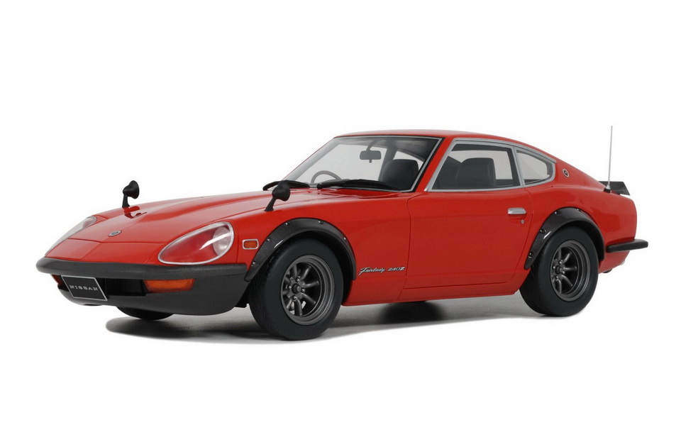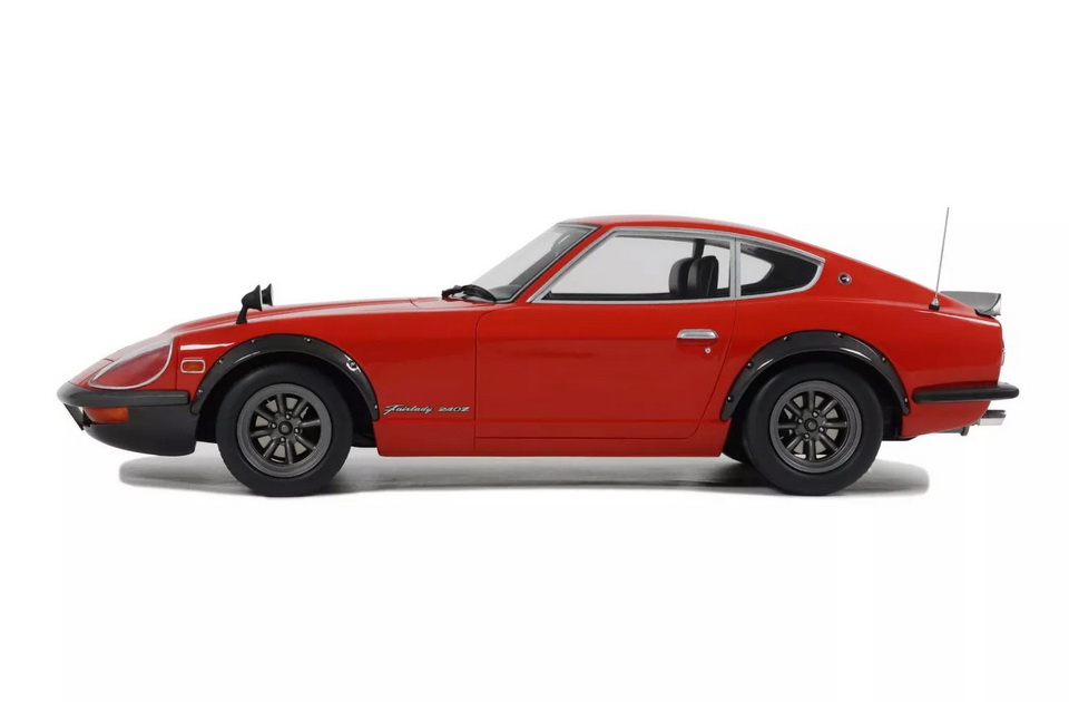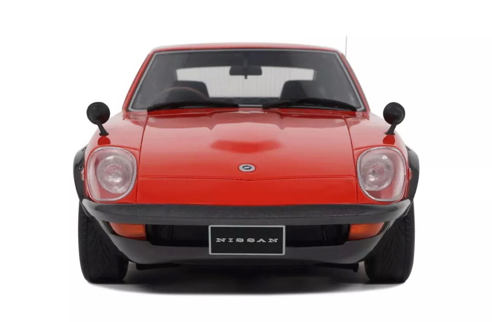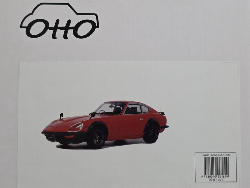 Nissan Fairlady 240 ZG - rok výroby vozu: 1972 - výrobce modelu: OttO Mobile - měřítko: 1:18 - materiál: resin - barva: červená (Grand Prix Red) - limitovaná edice: 3000ks - vydání modelu: září 2024 - číslo produktu: OT457 Datsun 240Z (v Zemi vycházejícího slunce známý jako Fairlady Z) byl kupé vyráběný na počátku 70. let primárně pro americký trh, odkud byl krátce poté exportován také do Japonska a Evropy. Existovaly tři varianty: Z, Z-L a ZG. Verze ZG se vyznačuje charakteristickou přídí typu „G-nose“, která zahrnuje krytá světla, karosářské díly z laminátu a speciální rozšířené blatníky. Model ZG byl určen výhradně pro japonský trh a vznikl za účelem homologace modelu 240Z pro skupinu 4 (GT a rallye). Jde o mimořádně vzácnou verzi!