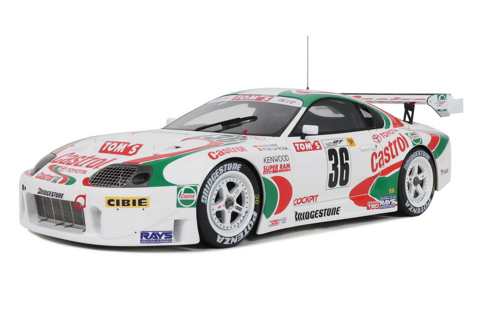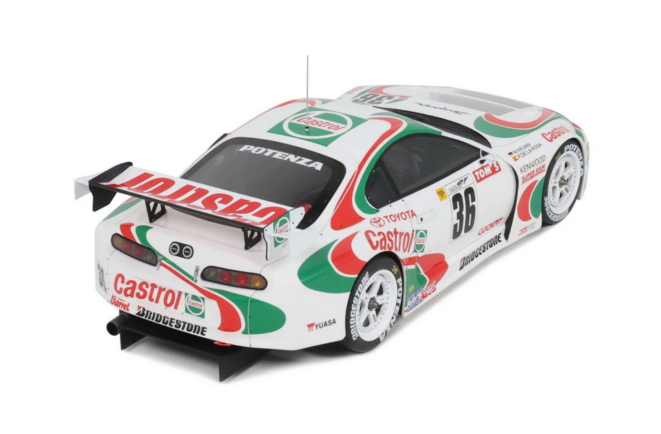 Toyota Supra Racing GT500 JGTC - rok výroby vozu: 1997 - výrobce modelu: OttO Mobile - měřítko: 1:18 - materiál: resin - barva: #36 Krumm / De La Rosa - limitovaná edice: 2500ks - vydání modelu: únor 2026 - číslo produktu: OT494 Toyota Supra Racing GT500 pochází ze šampionátu Super GT (dříve JGTC), japonské série okruhových závodů. Tato extrémní závodní verze modelu Toyota Supra Mk.4 v této disciplíně soutěžila již od roku 1995. Navzdory velmi silným výkonům získala tato závodní zbraň Toyoty mistrovský titul pouze jednou – v roce 1997, kdy ji pilotovali Pedro de la Rosa a Michael Krumm. Díky ikonickému zbarvení Castrol, tehdejšímu oficiálnímu partnerovi Toyoty v motorsportu, se vůz stal symbolem celé série. Celosvětově pak získal obrovskou popularitu díky videohře Gran Turismo. Jako skutečná ikona prvního automobilového simulátoru na konzoli PlayStation 1 okouzlila Supra GT500 celou generaci hráčů a stala se jedním ze symbolů této slavné herní série.
