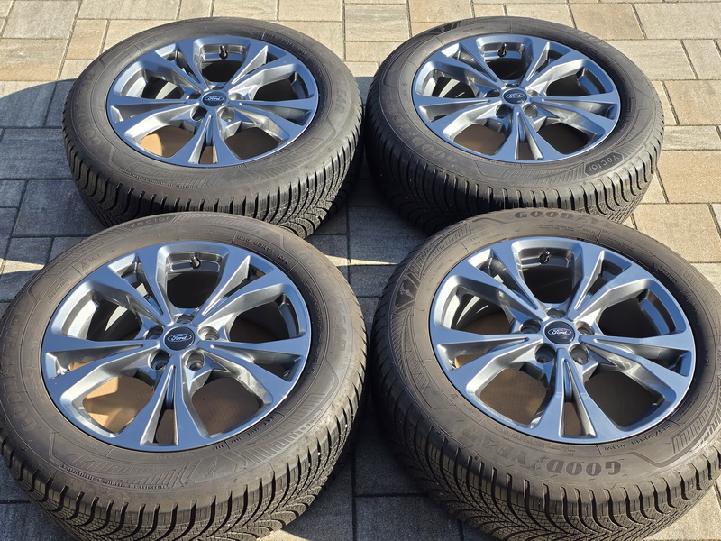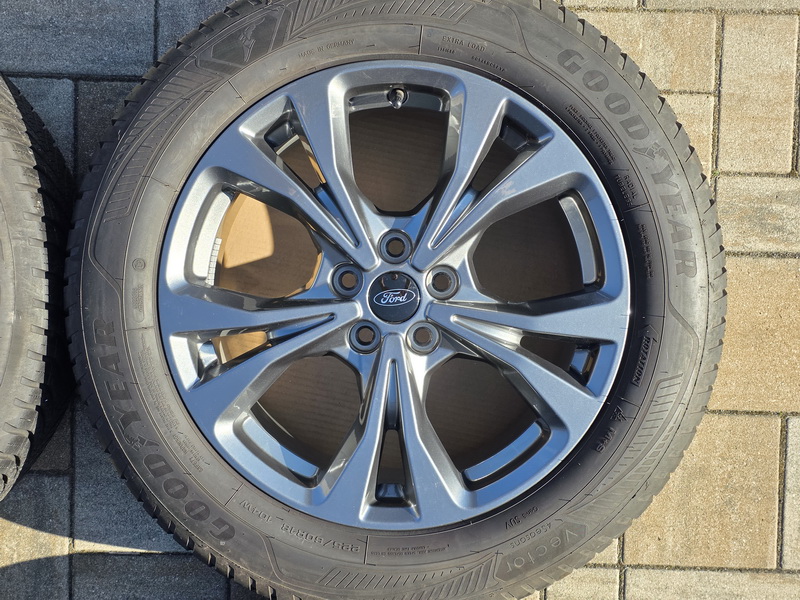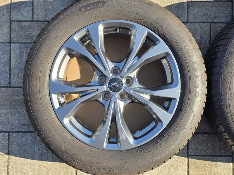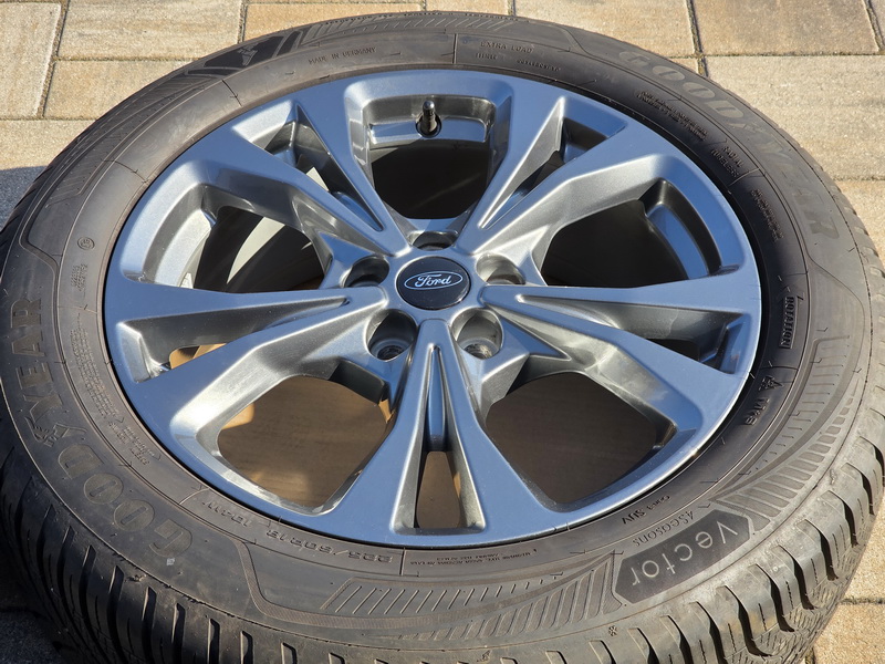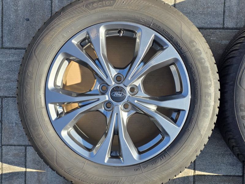 4ks originálních alu kol FORD Kuga III - rozměr 7,5x18" - rozteč 5x108 - ET 50 - středová díra 63,3mm. - včetně celoročních pneu GOODYEAR Vector 4 Seasons Gen-3 SUV v rozměru 225/60 R18 104V (vzorek 7,2mm + 7,2mm + 7,1mm + 7,0mm), vyrobených v srpnu 2023. - kola jsou naprosto rovná a bez odřenin. - kola jsou v leskle antracitovém provedení. - číslo originálního dílu FORD = LV4C-N2B.