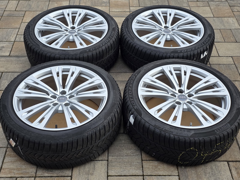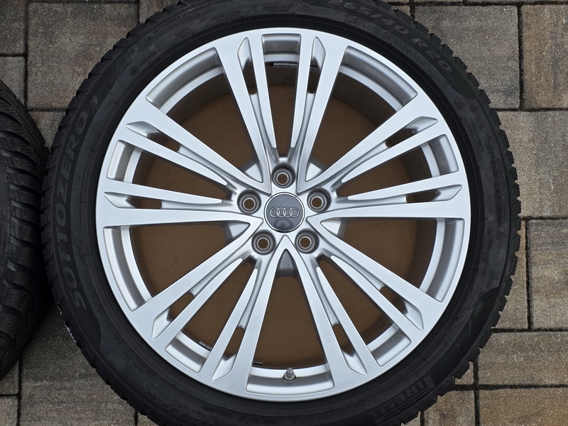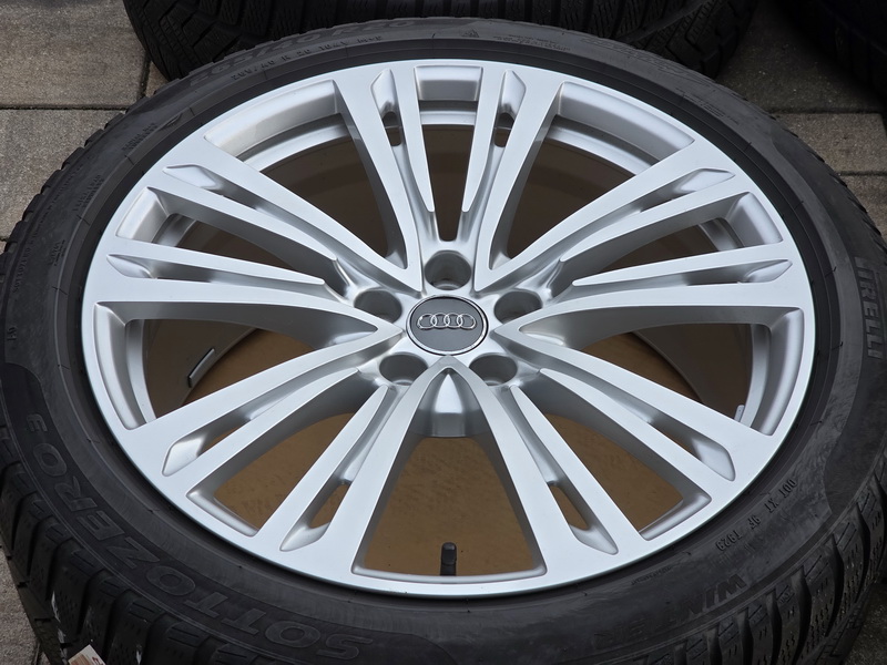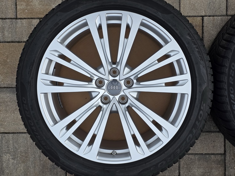4ks originálních alu kol AUDI A8 (D5) - rozměr 9x20" - rozteč 5x112 - ET 40 - středová díra 66,6mm. - včetně zimních pneu PIRELLI Sottozero 3 v rozměru 265/40 R20 104V (vzorek 7,0mm + 6,9mm + 6,6mm + 6,4mm), vyrobených v roce 2022. - včetně originálních TPMS senzorů tlaku v pneu. - kola jsou naprosto rovná a bez oděrek. - kola jsou v leskle stříbrném provedení. - číslo originálního dílu AUDI = 4N0 601 025 Q (4N0601025Q).