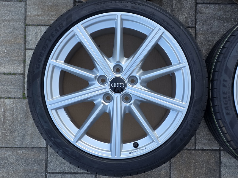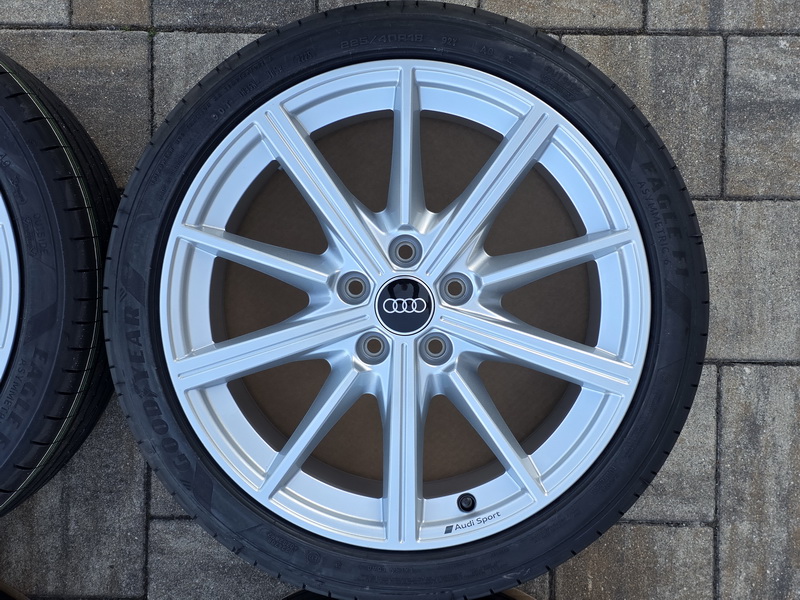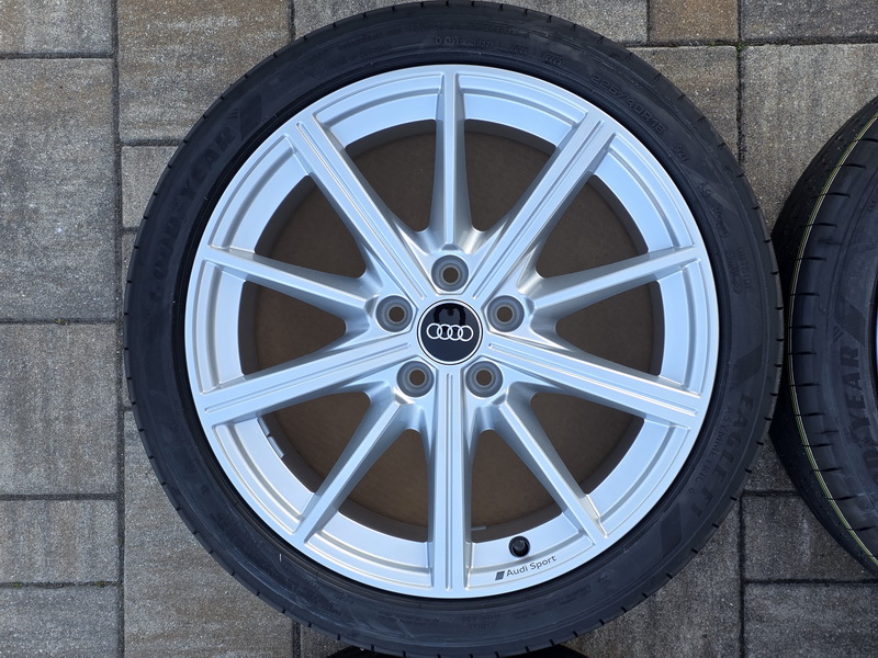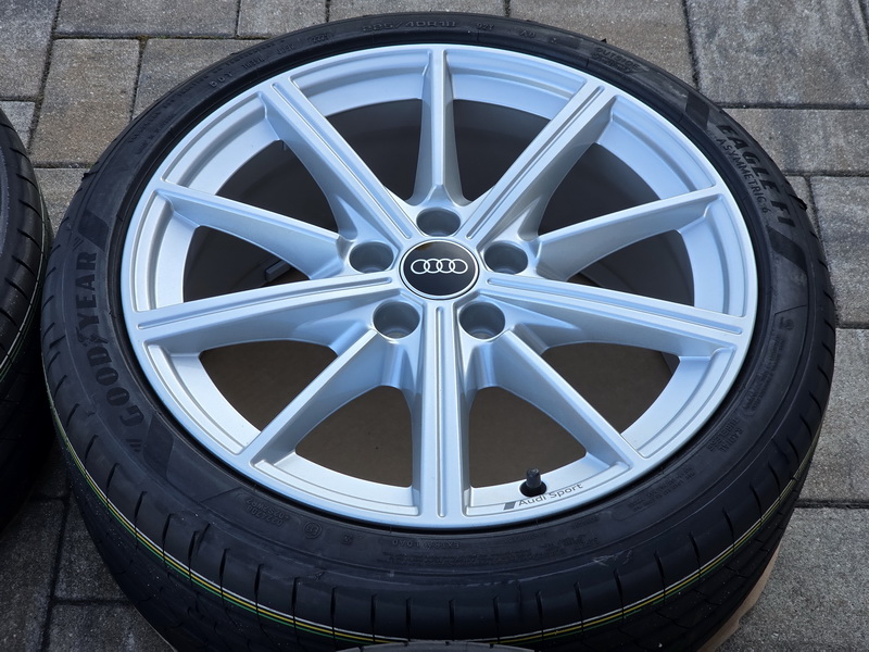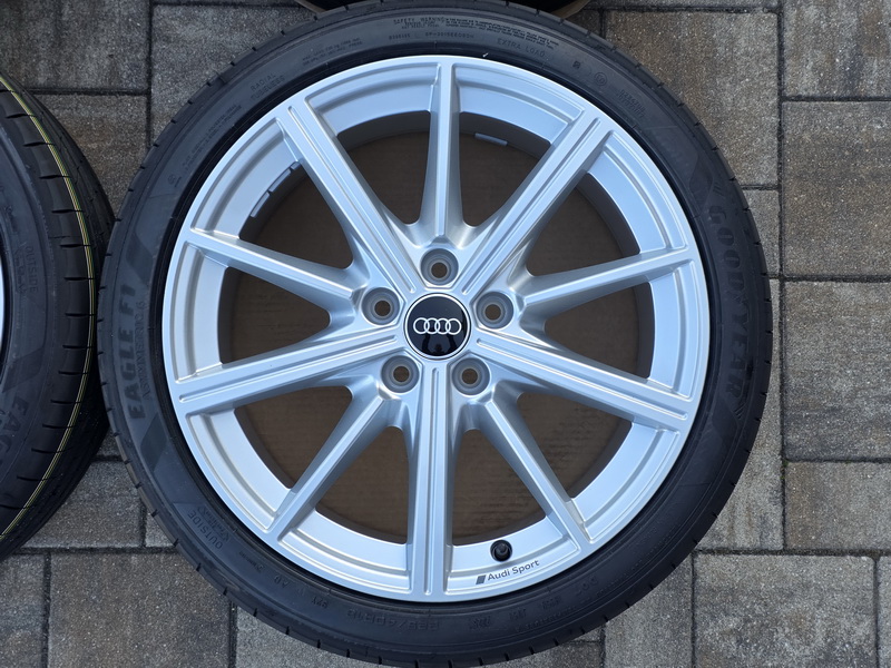 4ks originálních alu kol AUDI A3 / S3, model Audi Sport - rozměr 8×18" - rozteč 5x112 - ET 46 - středová díra 57,1mm - včetně letních pneu GOOD YEAR Eagle F1 Asymmetric 6 v rozměru 225/40 R18 92Y AO, vyrobených v květnu 2025. - kola i pneu jsou nová a nejetá. - číslo originálního dílu AUDI = 8Y0 601 025 CR (8Y0601025CR).