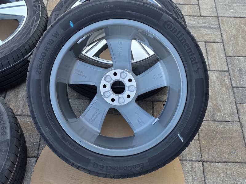 4ks originálních alu kol AUDI Q2, model 5-Arm Dynamik - rozměr 7×18" - rozteč 5x112 - ET 45 - středová díra 57,1mm - včetně letních pneu CONTINENTAL EcoContact 6 Q v rozměru 215/50 R18 92W AO, vyrobených v lednu 2025. - kola i pneu jsou nová a nejetá. - číslo originálního dílu AUDI = 81A 601 025 G (81A601025G).