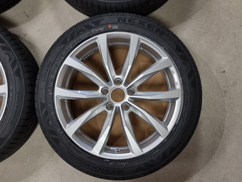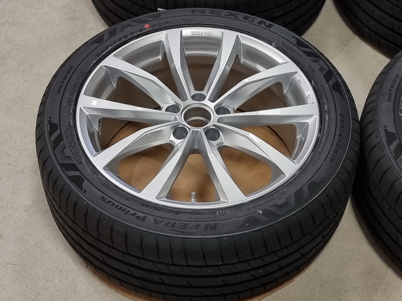 4ks italských alu kol MAK, model Wolf - rozměr 8x18" - rozteč 5x112 - ET 30 - středová díra 57,1mm. - vyšší nosnost kol = 695kg / kolo. - KBA certifikace 49741 (možnost zápisu kol do TP). - včetně letních pneu NEXEN N'Fera Primus v rozměru 245/45 R18 100Y XL, vyrobených v únoru 2022. - včetně programovatelných bezdrátových TPMS senzorů tlaku v pneu HUF ECS1410-B. - kola i pneu jsou nová a nejetá. - kola jsou ve stříbrném provedení (Silver).