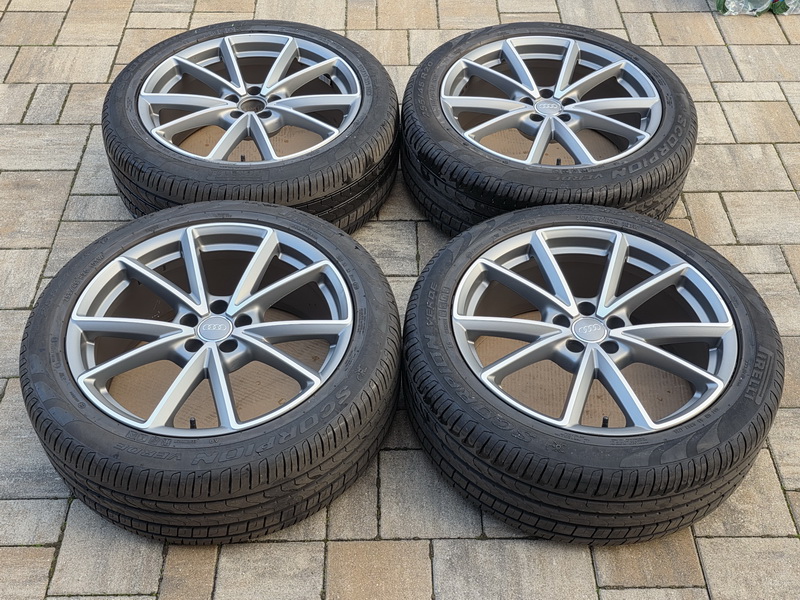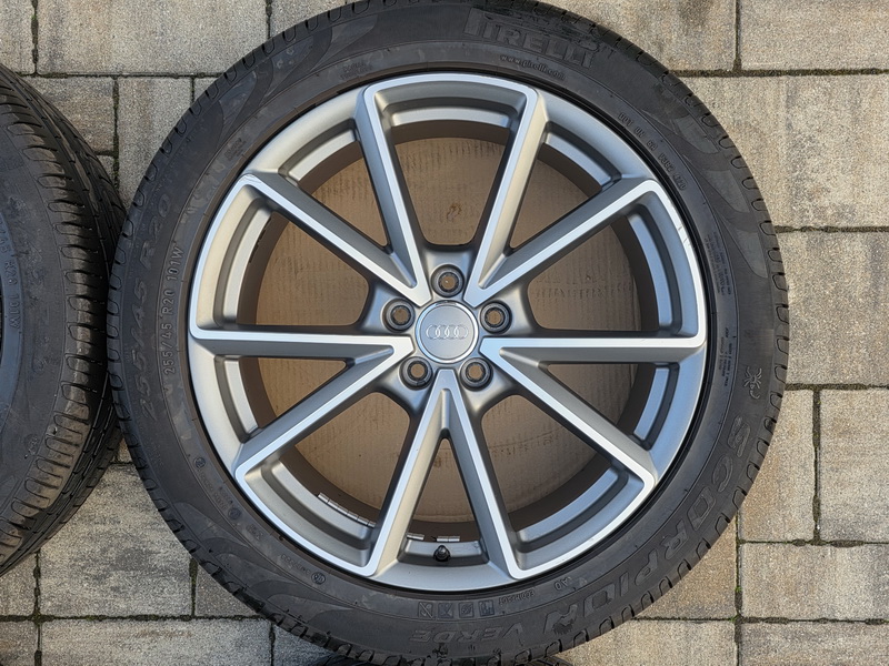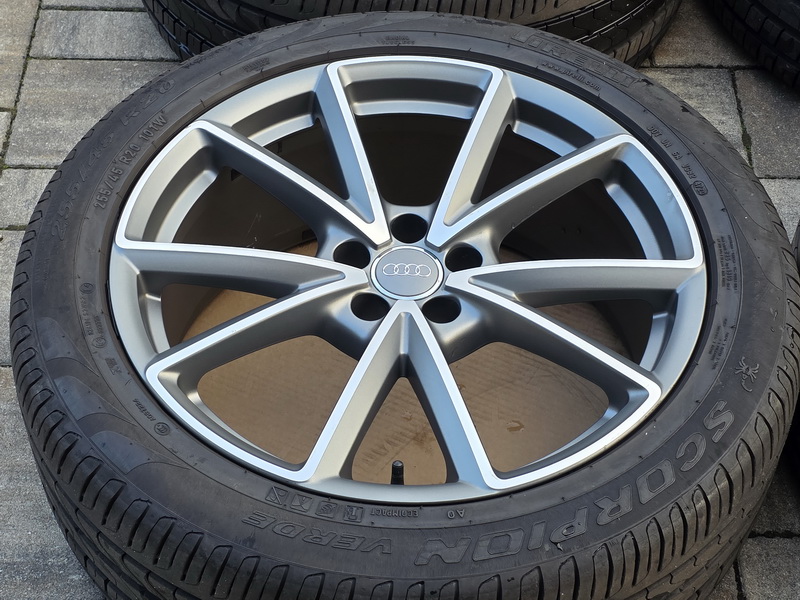 4ks originálních alu kol AUDI Q5 (8R) - rozměr 8,5x20" - rozteč 5x112 - ET 33 - středová díra 66,6mm. - včetně letních pneu PIRELLI Scorpion Verde v rozměru 255/45 R20 101W AO, vyrobených v listopadu 2020 (vzorek >7mm). - kola jsou naprosto rovná, mají několik oděrek na hraně (viz foto). - kola jsou v titanově šedém provedení s broušenými čelními plochami (Titan-grau poliert). - číslo originálního dílu AUDI = 8R0 601 025 CH (8R0601025CH).