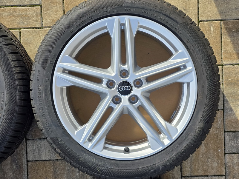 4ks originálních alu kol AUDI Q5 / SQ5 (FY) - rozměr 8x20" - rozteč 5x112 - ET 39 - středová díra 66,6mm. - včetně zimních pneu CONTINENTAL WinterContact TS850P v rozměru 255/45 R20 101V, vyrobených v roce 2023. - kola i pneu jsou nová a nejetá. - kola jsou v leskle stříbrném provedení. - číslo originálního dílu AUDI = 80A 601 025 N (80A601025N).