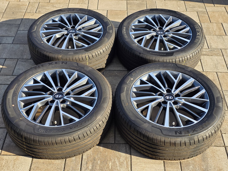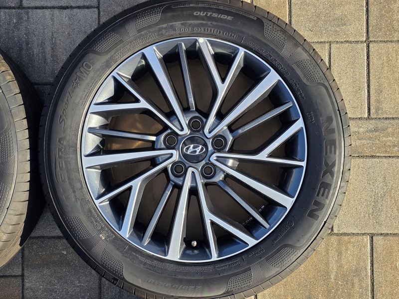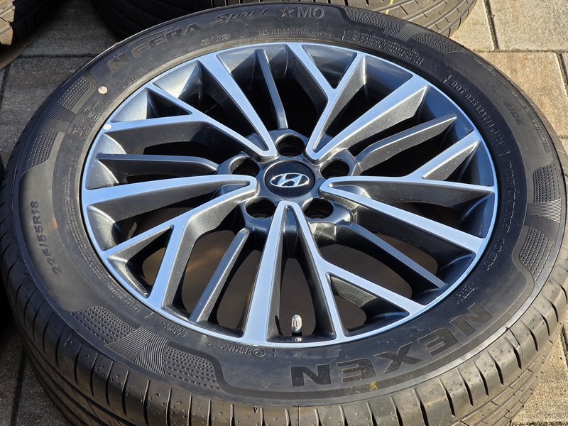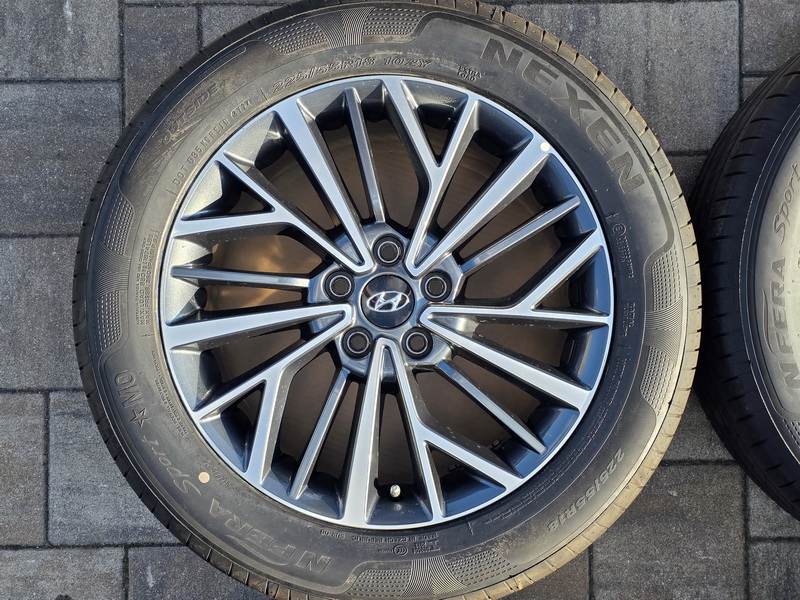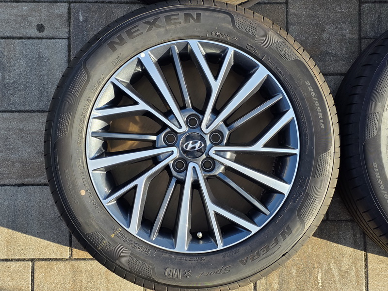 4ks originálních alu kol HYUNDAI Tucson N-Line - rozměr 7x18" - rozteč 5x114,3 - ET 51 - středová díra 67,1mm. - včetně letních pneu NEXEN NFera Sport SU2 v rozměru 225/55 R18 102Y (vzorek 7,4mm + 7,4mm + 7,3mm + 7,3mm), vyrobených v září 2024. - kola jsou naprosto rovná a bez odřenin. - kola jsou v leskle antracitovém provedení s leštěnými čelními plochami. - číslo originálního dílu HYUNDAI = 52910-D7320.