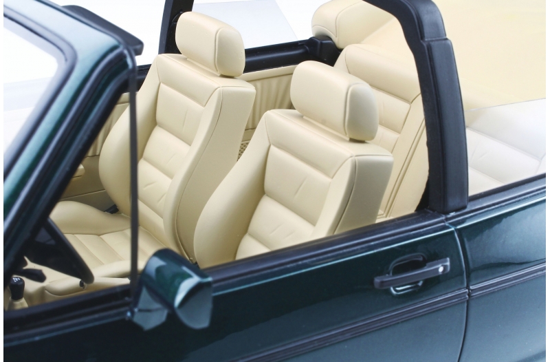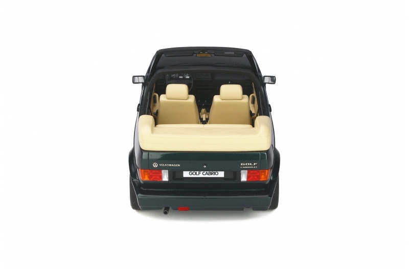 Volkswagen Golf Mk.1 Cabriolet Classic Line - rok výroby vozu: 1992 - výrobce modelu: OttO Mobile - měřítko: 1:12 - materiál: resin - barva: zelená (Classic Green) - limitovaná edice: 999ks - vydání modelu: červen 2019 - číslo produktu: G036 Golf Mk1 byl důstojným nástupcem kabrioletu Beetle. Jeho úspěch byl takový, že přežil i druhou generaci Golfu. Classic Line měl navíc posilovač řízení, elektricky ovládanou střechu s proskleným zadním oknem a interiér v krémové kůži. Měl robustní 1,8l motor o výkonu 90 koní. Se svým klasickým estetickým a nenapodobitelným obloukem je tento Golf pro milovníky této značky povinností.
