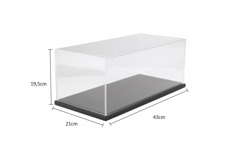 Výstavní vitrína (showcase) pro modely 1:12 - výrobce: OttO Mobile - číslo produktu: B012 - rozměry: 21cm / 43cm / 19,5cm (hloubka / délka / výška s podstavcem).