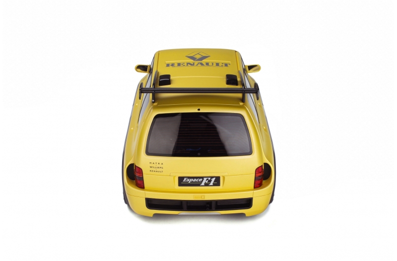 Renault Espace F1 - rok výroby vozu: 1994 - výrobce modelu: OttO Mobile - měřítko: 1:12 - materiál: resin - barva: žlutá F1 (Yellow F1) - limitovaná edice: 3000ks - vydání modelu: září 2023 - číslo produktu: G070 Espace F1 je společný projekt realizovaný Renaultem a Matrou. Vznikl v roce 1994 jako oslava 10 let existence slavného MPV francouzského výrobce. Jde o „kulturisticky svalnatý“ Espace, který má motor z Formule 1 o výkonu 780 koní! Motor pochází z Williamsu FW15C poháněného Renaultem a stal se mistrem v roce 1993 s Alainem Prostem. Tento koncept, představený v roce 1994 na pařížském autosalonu, jel pouze na několika novinářských akcích s Ericem Bernardem nebo Alainem Prostem za volantem v 90. letech, dále pak i s Jeanem Ragnotti na začátku roku 2000 a byl používán jako Safety Car během několika Grand Prix Formule 1! Espace F1 se rychle stal kultem jako nejlepší příklad tvůrčí svobody 90. let v oblasti automobilismu.