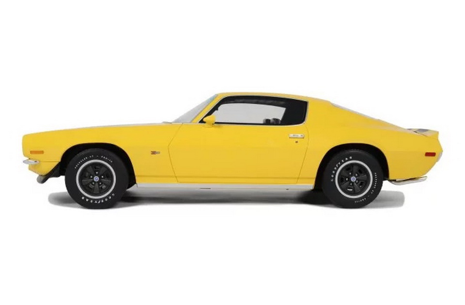 Chevrolet Camaro Z28 RS - rok výroby vozu: 1970 - výrobce modelu: OttO Mobile - měřítko: 1:12 - materiál: resin - barva: žlutá (Daytona Yellow 984) - limitovaná edice: 999ks - vydání modelu: únor 2025 - číslo produktu: G085 Druhá generace modelu Camaro šla do prodeje v roce 1970. Vizuálně se zcela lišila od svého předchůdce. Na první pohled ji lze rozeznat podle předních světel. Tento "Pony Car" byl úhlavním rivalem Mustangu. Se svou délkou 4,8 metru a výraznou barvou rozhodně nepřehlédnutelný. Totéž platí i pro jeho motor. Model LT-1 pohání osmiválec V8 s výkonem 360 koní, a je také pořádně hlasitý! Kromě svých ladných křivek vynikají tyto krásné americké vozy i svým melodickým zvukem. Verze Z28, která se objevila už u první generace, nabízela speciální kit prodávaný tehdy za 573 dolarů (4660 dolarů přepočteno na ceny v roce 2025).