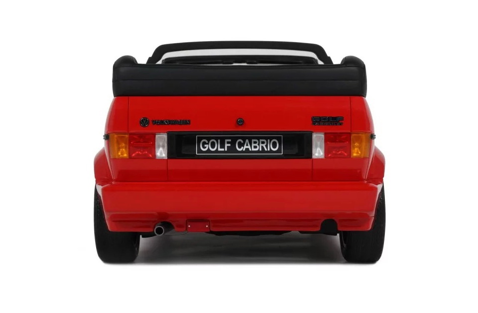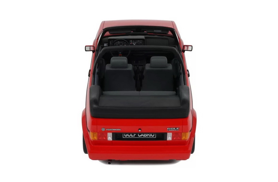 Volkswagen Golf 1 Cabriolet Sport Line - rok výroby vozu: 1991 - výrobce modelu: OttO Mobile - měřítko: 1:12 - materiál: resin - barva: červená (Flash Red) - limitovaná edice: 999ks - vydání modelu: červenec 2025 - číslo produktu: G095 Po úspěchu kabrioletu Beetle byl Golf dalším ikonickým modelem Volkswagenu, který se dostal na trh ve verzi kabriolet – a to díky návrháři karoserií Karmann. Verze „s větrem ve vlasech“ se objevila už u první generace. Od roku 1979 do roku 1993 byl Golf Cabriolet s charakteristickým ochranným obloukem celosvětovým úspěchem. Vyrobeno bylo téměř 400 000 kusů, což z něj činí jeden z nejprodávanějších kabrioletů v dějinách automobilismu. Verze Sportline se vyráběla v Evropě v letech 1991 až 1993. Tento limitovaný model se vyznačoval označením na blatnících a upraveným interiérem se speciálními sedadly, palubní deskou a volantem.