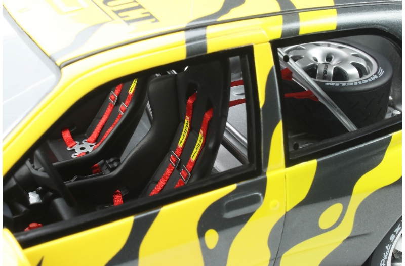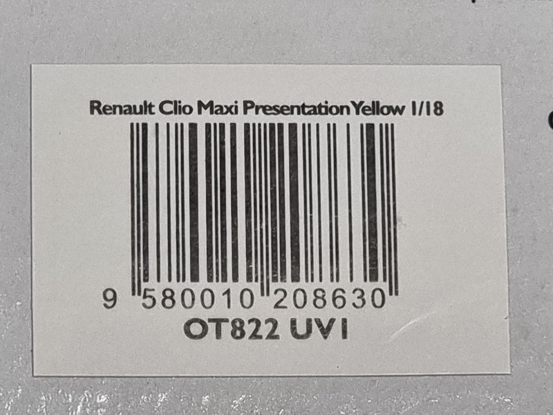 Renault Clio Maxi Presentation - rok výroby vozu: 1995 - výrobce modelu: OttO Mobile - měřítko: 1:18 - materiál: resin - barva: zebrovaá černá a žlutá (Zebra black & yellow) - limitovaná edice: 3000ks - vydání modelu: n/a - číslo produktu: OT822 V dnešní době je nových týmových barev soutěžních vozů během zkoušek nebo pro prezentaci modelu až příliš, aby se daly spočítat. Důkazem tohoto je i pruhovaný vzhled modelu Polo R WRC’17, který nikdy nespatřil světlo světa. V devadesátých letech byl Renault průkopníkem. Při prezentaci Renaultu Clio Maxi byly použity žlutočerné „pruhované“ týmové barvy. Od uniformní šedi, která měla následně obléknout Clio Maxi, to bylo hodně vzdálené. Originální a poutavý dekor, který se zapsal do historie.