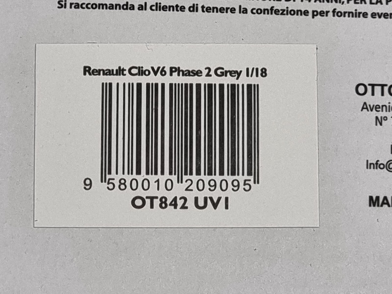 Renault Clio V6 Phase II - rok výroby vozu: 2003 - výrobce modelu: OttO Mobile - měřítko: 1:18 - materiál: resin - barva: stříbrná (Gris Titanium) - limitovaná edice: 2000ks - vydání modelu: září 2020 - číslo produktu: OT842 V roce 2000 již existovalo sportovní Clio v podobě Williams (Clio I) nebo RS (Clio 2). Kulturistické Clio? To byla novinka! Renault všechny překvapil odhalením své „V6“. A jaká byla představa? Oslavit věrnost Renaultu k různým automobilovým soutěžím s motorem V6 a radikálním vzhledem! I přes zvýšenou cenu a poněkud pracné ovládání mělo okamžitý úspěch. O 20 let později je Clio V6 měřítkem, svatým grálem mezi fanoušky Renaultu!