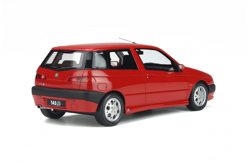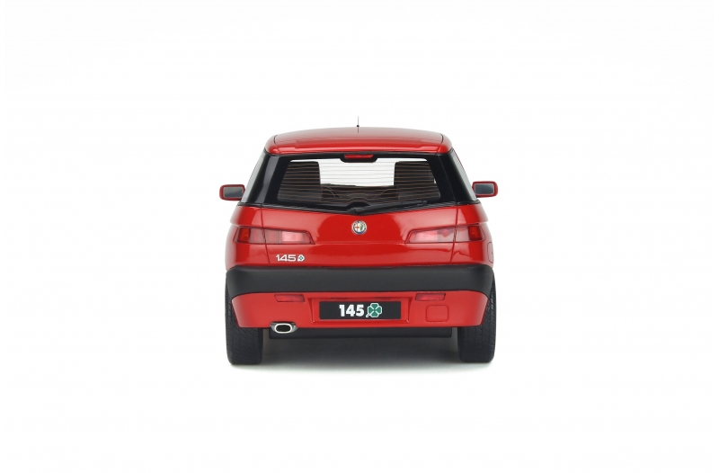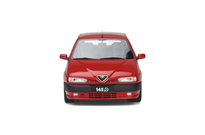 Alfa Romeo 145 Quadrifoglio - rok výroby vozu: 1998 - výrobce modelu: OttO Mobile - měřítko: 1:18 - materiál: resin - barva: červená (Rosso Alfa) - limitovaná edice: 1500ks - vydání modelu: leden 2021 - číslo produktu: OT361 Alfa Romeo 145 je kompaktní sedan vyráběný v letech 1994 až 2001. Tento italský vůz navržený kontroverzním Chrisem Edwardem Banglenem se vyznačuje velmi dynamickou a dravou přídí a zadní částí, která rozbíjí tvary. O tomto atypickém designu se dnes stále diskutuje. Dává této 145 na tehdejší dobu poměrně originální vzhled „mini loveckého kombi“. Jeho verze Quadrifoglio je osazena dvoulitrovým motorem Twin Spark o výkonu 150k zděděným z GTV. Vše je založeno na sportovním podvozku, který zajišťuje plynulé ovládání na silnici.