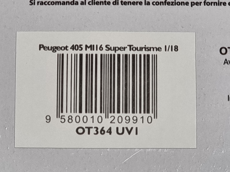 Peugeot 405 MI16 Super Tourisme - rok výroby vozu: 1995 - výrobce modelu: OttO Mobile - měřítko: 1:18 - materiál: resin - barva: #1 Laurent Aiello - limitovaná edice: 2500ks - vydání modelu: n/a - číslo produktu: OT364 Laurent Aiello, který mezi sezónami 93-94 přeběhl z Oreca / BMW, přišel do Peugeot Sport, aby řídil 405 MI16 ve francouzském Superturismo šampionátu. Ve své první sezóně za volantem této lvice vyhrál Laurent Aiello 5 závodů a byl v této disciplíně korunován francouzským šampionem. S číslem 1 na dveřích se v sezóně 1995 snažil odolat velkému návratu BMW. V posledním závodu sezóny skončil třetí a přinesl tak konečné vítězství Peugeotu 405 MI16 Supertourisme v jeho posledním roce ve francouzském superturismo šampionátu.