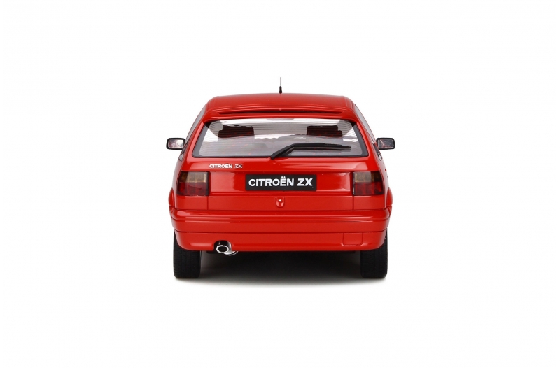Citroen ZX 16V - rok výroby vozu: 1994 - výrobce modelu: OttO Mobile - měřítko: 1:18 - materiál: resin - barva: červená (Red) - limitovaná edice: 1500ks - vydání modelu: srpen 2019 - číslo produktu: OT797 Citroën ZX byl poměrně moderní, ale když se poprvé objevil na trhu, byl považován za příliš „umírněný“. S cílem zvýšit prodeje a doprovázet úspěch ZX na Dakaru vyvinul Peugeot sportovní verzi tohoto kompaktního vozu. Právě to, jak dobře se vůz ovládal na silnici, bylo prosazováno jako největší prodejní přednost ZX. Změny zahrnovaly ventilované kotoučové brzdy, sportovnější podvozek a proslulou samonatáčecí zadní nápravu. Se svým 4válcovým motorem o objemu 2 l a 150 koňmí se ZX 16V okamžitě zařadil mezi ostatní sportovní vozy. V současné době je model zvláště vyhledávaný mezi sběrateli Youngtimerů.