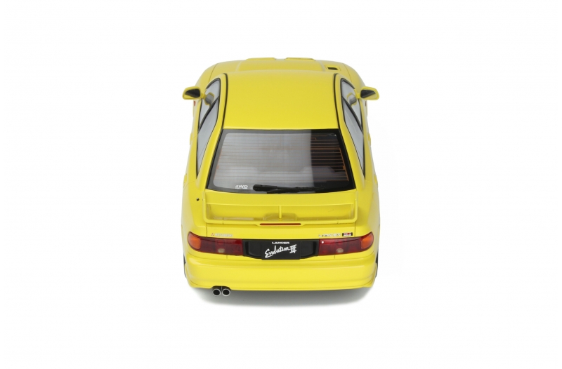 Mitsubishi Lancer EVO III - rok výroby vozu: 1995 - výrobce modelu: OttO Mobile - měřítko: 1:18 - materiál: resin - barva: žlutá (Dandelion Yellow) - limitovaná edice: 3000ks - vydání modelu: prosinec 2021 - číslo produktu: OT382 Když přemýšlíme o japonských automobilech z 90. let a počátku 20. století, automaticky se nám vybaví Subaru Impreza a její nejlepší nepřítel, Mitsubishi Lancer! „Evo“ jsou sportovní verze sedanu Mitsubishi. Od roku 1992 a více než 10 let hájili barvy japonské značky na stupních mistrovství světa v rally. V letech 1992 až 2005 Mitsubishi získalo 4 tituly řidičů a 1 konstruktérský titul! V roce 1996 s EVO III začal tento úspěšný příběh prvním titulem, který získal finský Tommi Mäkinen. Vítězství, které díky přeplňovanému motoru nevyhnutelně přilákalo mnoho závodních nadšenců do produkční verze s výkonem 270 koní. Vůz, jehož aerodynamika byla ve srovnání s EVO II zcela přepracována.