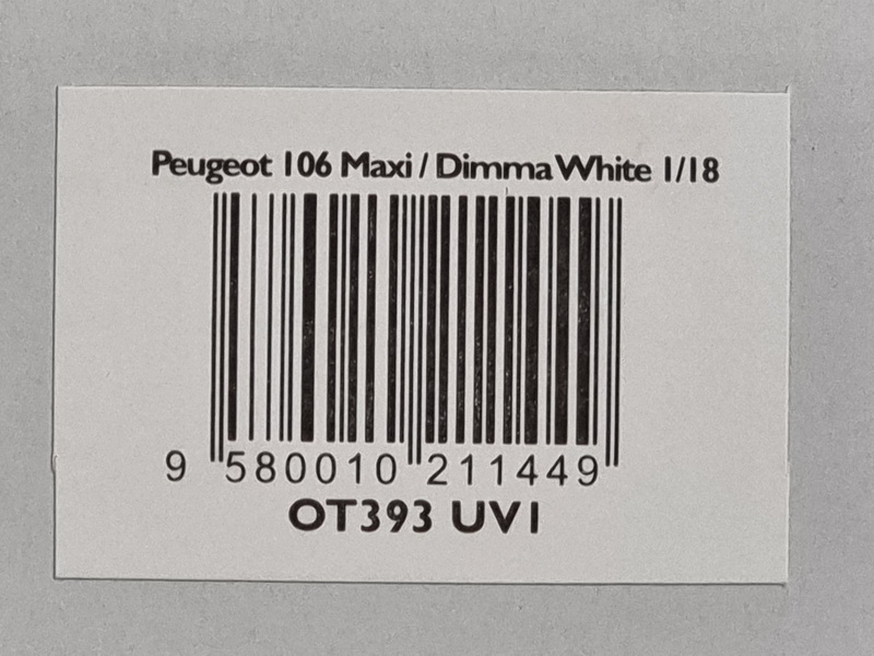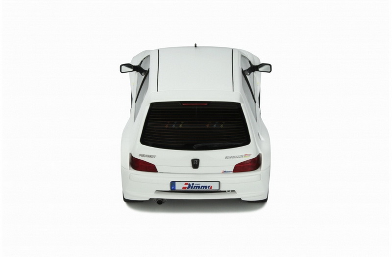 Peugeot 106 "Maxi" Dimma - rok výroby vozu: 1997 - výrobce modelu: OttO Mobile - měřítko: 1:18 - materiál: resin - barva: bílá (Blanc Banquise) - limitovaná edice: 3000ks - vydání modelu: leden 2022 - číslo produktu: OT393 Dimma Design je belgická společnost specializující se na úpravy automobilů. Rok 1984 znamenal zlom v historii této společnosti, protože právě v tomto roce Jean Todt, tehdejší šéf Peugeot Sport, udělil homologaci kitu vyrobenému pro 205. O několik let později Dimma Design navrhl rozšiřující kit pro Peugeot 106. A byl to kit, který použil Peugeot Sport pro design svého 106 Maxi, s nímž vstoupil do rally! Stavebnici "Dimma" pro 106 prodává belgická společnost dodnes.