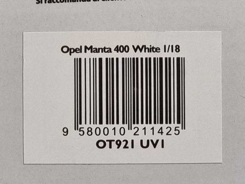 Opel Manta B 400 - rok výroby vozu: 1982 - výrobce modelu: OttO Mobile - měřítko: 1:18 - materiál: resin - barva: bílá (White) - limitovaná edice: 2000ks - vydání modelu: leden 2022 - číslo produktu: OT921 Opel Manta byl uveden na trh v roce 1970. První generace (Manta A) byla nahrazena v roce 1975 druhou (Manta B). V roce 1982 byl Opel na vrcholu mistrovství světa v rallye s titulem jezdce, který vyhrál Walter Röhrl s vozem Ascona 400. Pro příchod nové skupiny B chtěl Opel vyvinout nový vůz. Jako jeho základna byla použita Manta B. Aby bylo možné vůz homologovat v rally, uvedl Opel na trh komerčně vyráběné vozidlo Opel 400 „Homologation“. Tak bylo vyrobeno 245 exemplářů tohoto vozu. Tato Manta 400 má 275 koní díky motoru Cosworth 16S!