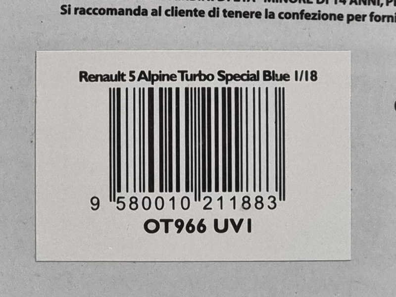 Renault 5 Alpine Turbo Special - rok výroby vozu: 1984 - výrobce modelu: OttO Mobile - měřítko: 1:18 - materiál: resin - barva: modrá (Navy Blue 491) - limitovaná edice: 3000ks - vydání modelu: březen 2022 - číslo produktu: OT966 R5 byl od roku 1972 nejprodávanějším Renaultem. Zatímco R5 Turbo na vás působí dojmem každodenního Jeana Ragnottiho, značka chce přidat Turbo k méně nafouklé verzi R5, aby konkurovala Golfu GTi. Pro tento účel byl vybrán R5 Alpine. V roce 1985 se z R5 Alpine stalo Alpine Turbo. Kromě motoru s turbem o výkonu 110k využil R5 Alpine příležitosti a nabídl mnoho nových funkcí: přepracovaný a modernizovaný interiér, nové ráfky, logo Turbo na masce chladiče a logo „A5“ na blatnících, vyhřívané zadní okno se stěračem… Všechno to, co dokázalo spojit komfort a sportovnost.