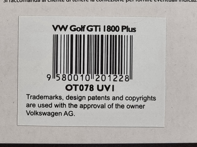 Volkswagen Golf 1 GTI 1800 Plus - rok výroby vozu: 1984 - výrobce modelu: OttO Mobile - měřítko: 1:18 - materiál: resin - barva: modrá (Blue) - limitovaná edice: 3000ks - vydání modelu: srpen 2012 - číslo produktu: OT078 .