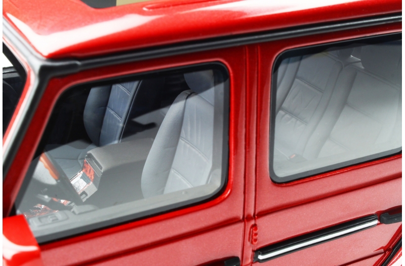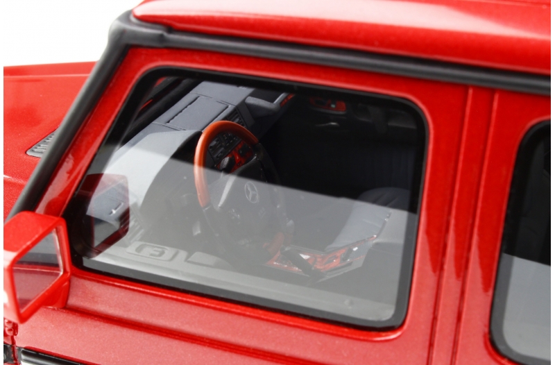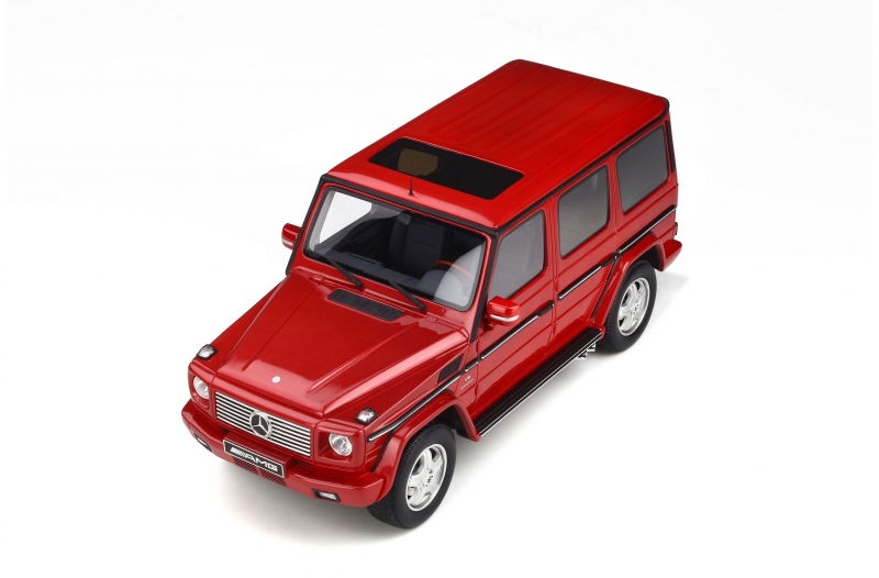 Mercedes-Benz G-Class 55 AMG - rok výroby vozu: 2003 - výrobce modelu: OttO Mobile - měřítko: 1:18 - materiál: resin - barva: červená (Thulite Red Metallic) - limitovaná edice: 999ks - vydání modelu: leden 2020 - číslo produktu: OT867 Mercedes-Benz třídy G není třeba představovat. Tento vzdálený bratranec Peugeotu P4, původně určený pro armádu, se postupem času stal synonymem luxusu a exkluzivity. V průběhu desetiletí byl neustále blízko k dokonalosti a v roce 2003 dostal V8 s 354 koňskými silami, čímž se tento Mercedes stal pořádným dragsterem s výkony, které u 4x4 dosud nebyly k vidění. Zrychlí na 100 km/h za pouhých 5,6 sekundy, což není na auto ve tvaru cihly žádná samozřejmost.