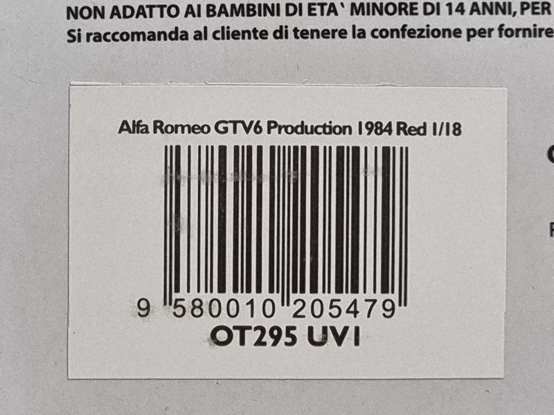 Alfa Romeo GTV6 Production - rok výroby vozu: 1984 - výrobce modelu: OttO Mobile - měřítko: 1:18 - materiál: resin - barva: červená (Rosso Alfa) - limitovaná edice: 1500ks - vydání modelu: říjen 2018 - číslo produktu: OT295 „Cuore sportivo“ neboli „Sportovní srdce“, je příslib ve sloganu značky. Alfa Romeo je ztělesněním závodění a emocí. V roce 1984 bylo třeba nahradit slavná kupé GT „Bertone“ a Alfetta GT. Firma z Arese představila elegantní vůz 2+2 navržený Giugiarem. Tento fastback dostal proslulý italský V6 s nenapodobitelným zvukem. Tento konkrétní motor byl používán pro Alfy po dobu 25 let a svůj mýtický status si udržel až do roku 2000. Model „Production“ určený pro francouzský trh byla limitovaná série 300 exemplářů vzdávajících hold vítězstvím ve francouzském šampionátu sériových vozů.