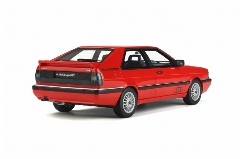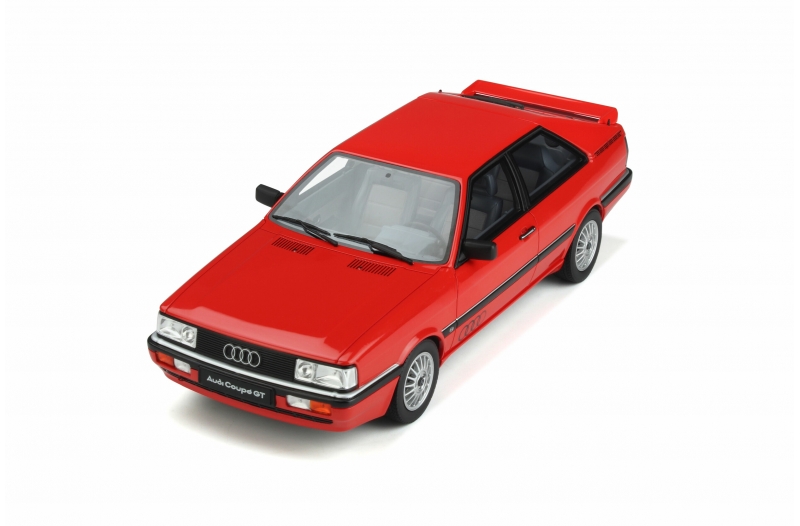 Audi GT Coupe - rok výroby vozu: 1987 - výrobce modelu: OttO Mobile - měřítko: 1:18 - materiál: resin - barva: červená (Tornado Rouge G2) - limitovaná edice: 2000ks - vydání modelu: červenec 2022 - číslo produktu: OT954 Audi GT Coupé je sportovní kupé založené na Audi 80. V roce 1981 bylo uvedeno na trh, v roce 1984 prošlo faceliftem a o rok později se začalo prodávat. Tato Phase 2 je charakteristická svými nárazníky, prahovými lištami a přední maska je inspirována Audi 100. Přepracována byla i zadní světla. Zadní spoiler je nyní v barvě karoserie a pochází z verze Quattro. K faceliftu konečně přibyla nová kola. Pod kapotou se ukrývá motor KV o objemu 2226 ccm, který nabízí o něco více výkonu.