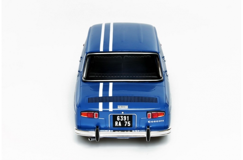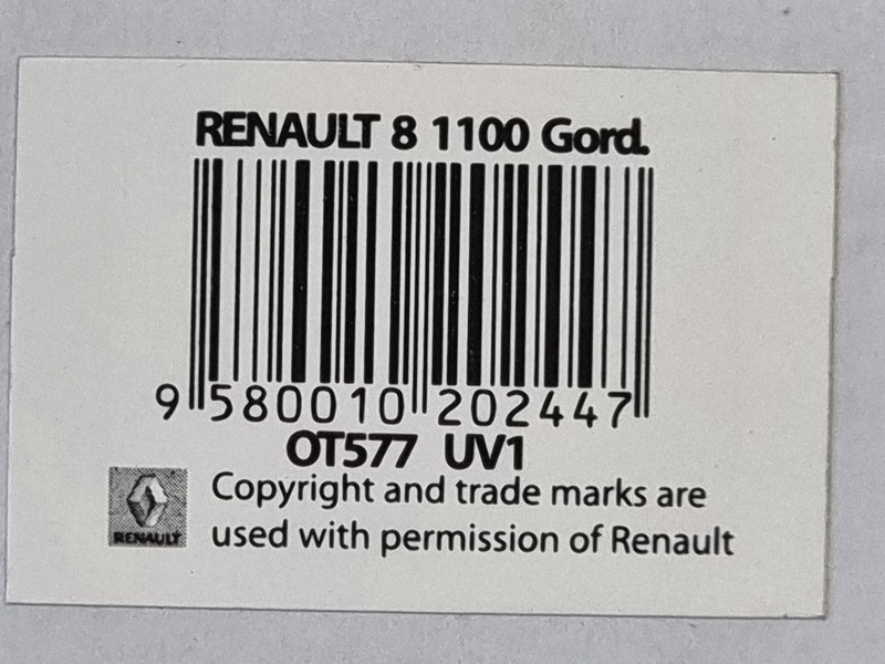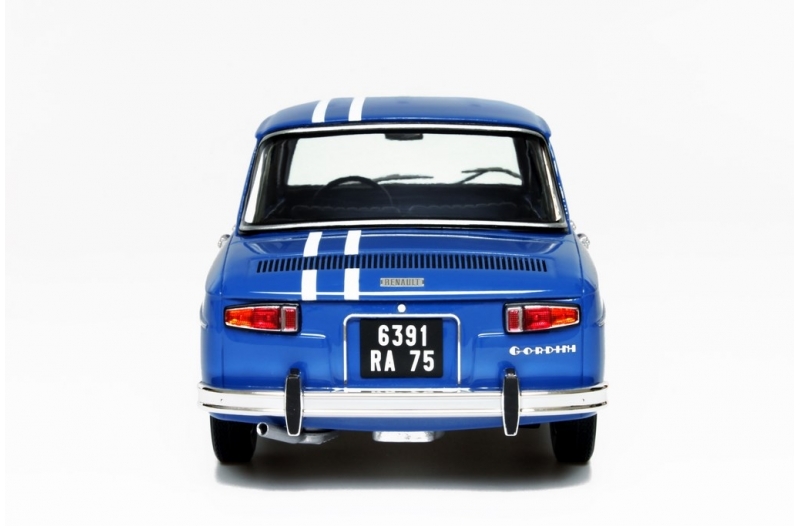 Renault 8 Gordini 1100 - rok výroby vozu: 1962 - výrobce modelu: OttO Mobile - měřítko: 1:18 - materiál: resin - barva: modrá (Bleu de France) - limitovaná edice: 1750ks - vydání modelu: říjen 2014 - číslo produktu: OT577 Renault 8 Gordini, uvedený na trh v červnu 1962, byl jedním z prvních francouzských vozů se čtyřmi brzdovými kotouči. Jeho vzadu uložený motor (Sierra; také nazývaný Cléon-Fonte) je vybaven pěti ložisky, což byla v té době novinka, ale rychle si našla cestu do řady automobilů až do devadesátých let. 1100 je první verzí R8 Gordini, kterou poznáte především podle čelního pohledu s „pouze“ dvěma světlomety. Byl to sportovní, ale i cenově dostupný vůz.
