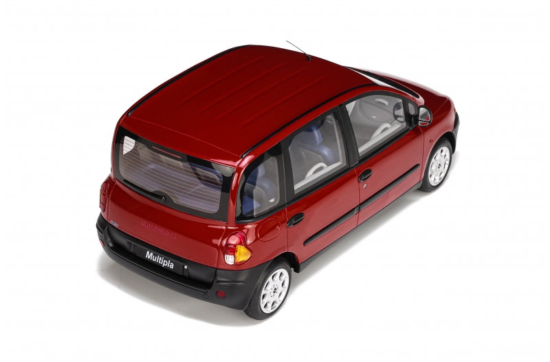 Fiat Multipla - rok výroby vozu: 2001 - výrobce modelu: OttO Mobile - měřítko: 1:18 - materiál: resin - barva: červená (Rosso Barocco 124B) - limitovaná edice: 999ks - vydání modelu: prosinec 2022 - číslo produktu: OT420 V 90. letech zuřila bitva minivanů. Renault Espace odstartoval v Evropě trend a mnoho výrobců se snažilo konkurovat francouzskému modelu. Fiat se rozhodl vzdát hold vozidlu z 50. a 60. let, Fiat 600 Multipla. Modernizovanou verzi navrhl Roberto Giolito a byla uvedena na trh v roce 1998. Design vyvolal mnoho diskuzí, dobrých i špatných, a poloha řadicí páky na palubní desce byla považována za důležitou inovaci. Prodalo se více než 300000 vozů, což je důkaz, že i přes kritiku „tvaru“ je tento velkoprostorový vůz velmi oblíbený! V poslední době je Multipla znovu popularizována díky Youtubers Vilebrequin, kteří se rozhodli udělat extrémní verzi s výkonem 1000 koní!