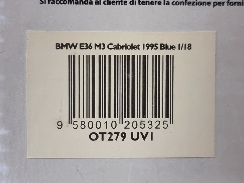 BMW E36 M3 Cabrio - rok výroby vozu: 1995 - výrobce modelu: OttO Mobile - měřítko: 1:18 - materiál: resin - barva: modrá (Estoril Blue) - limitovaná edice: 2000ks - vydání modelu: září 2018 - číslo produktu: OT279 V roce 1995, 3 roky po uvedení na trh, BMW znovu objevilo smyslnou M3 tím, že ji při faceliftu vybavilo 6-ti válcovým motorem s objemem zvýšeným na 3,2 litru. Její estetika zůstala relativně střízlivá, ale svými výkony předčila všechny své soupeře. S výkonem 321 koní byla M3 nejlepším sportovním vozem ve své kategorii a svou konkurenci dokázala porazit i cenou. S verzemi sedan, kupé a kabriolet se rychle stala ikonou v řadách sportovních BMW. Dnes je tato generace vyhledávána pro svou všestrannost a kvality, které jsou stále aktuální.