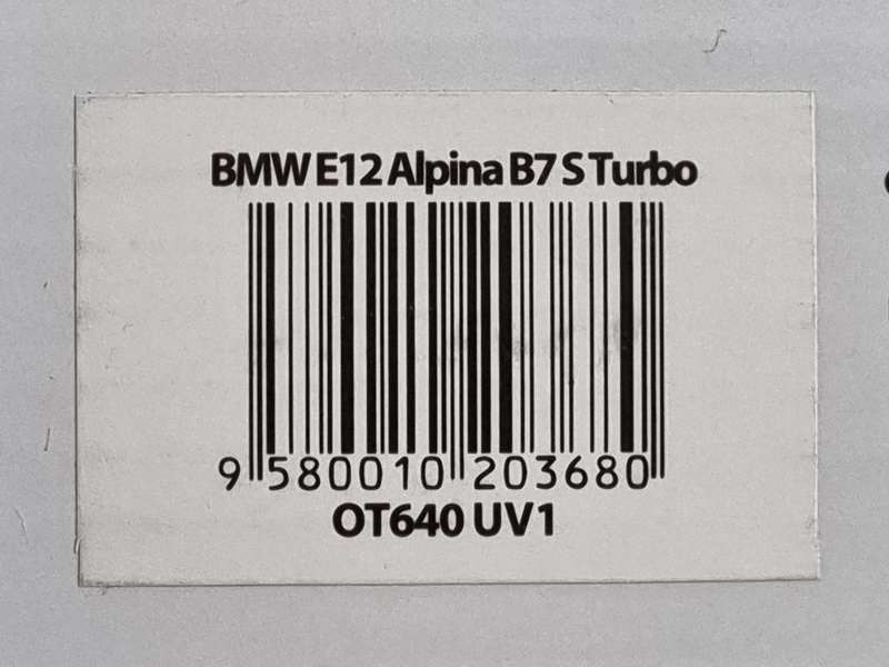 Alpina B7 E12 S Turbo - rok výroby vozu: 1981 - výrobce modelu: OttO Mobile - měřítko: 1:18 - materiál: resin - barva: modrá (Dark Sapphire Blue Metallic) - limitovaná edice: 2000ks - vydání modelu: září 2016 - číslo produktu: OT640 .