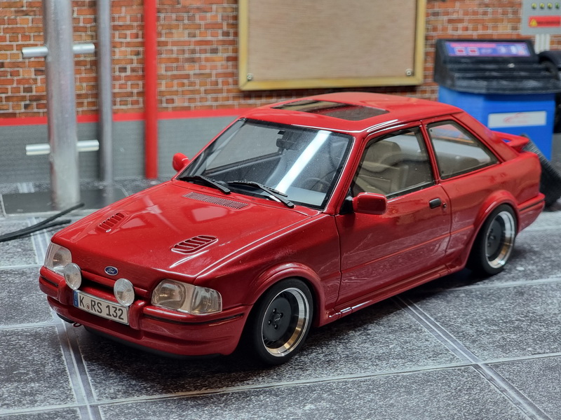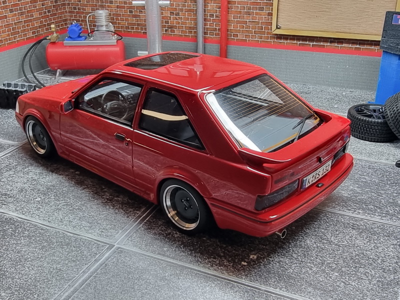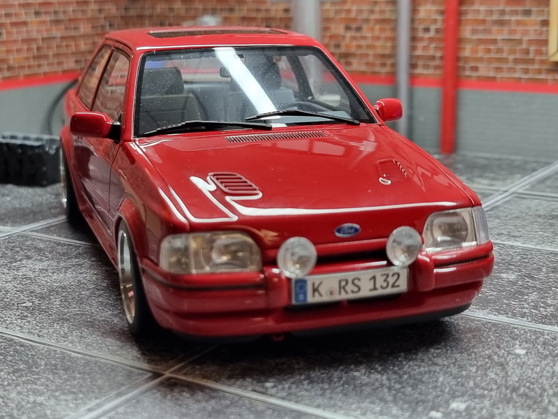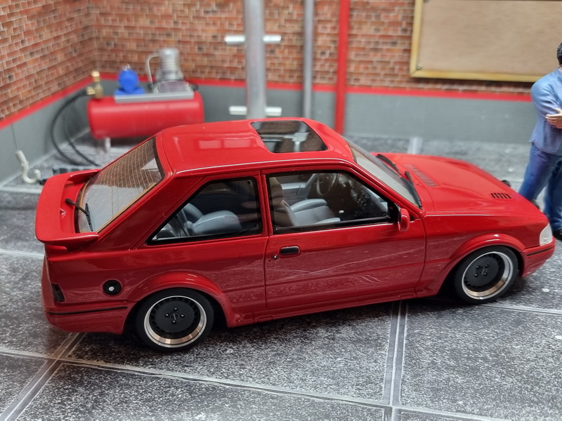 Ford Escort Mk4 RS Turbo Tuning - rok výroby vozu: 1990 - výrobce modelu: OttO Mobile - měřítko: 1:18 - materiál: resin - barva: červená (Radiant Red) - limitovaná edice: 3000ks - vydání modelu: srpen 2020 - číslo produktu: OT826 - jedná se o upravený model. Oproti originálu má tuningová kola Ronal Aero (nejsou pohyblivá), větší koncovku výfuku, čiré přední blinkry, zatmavené zadní lampy a upravenou SPZ. Escort, opravdová hvězda 60. a 70. let, měl v 80. letech potíže přiblížit se k předchozím úspěchům. Sportovní verze Escortu Mk4 byly také propadáky, protože naopak GTi započalo svou revoluci a uspělo na všech površích. Ford proto potřeboval zareagovat a rozhodl se přidat do svého Escortu Turbo. To stačilo ke schválení pro skupinu A v rallye a sportovní vůz hodný toho jména v prodejním katalogu. Aniž by byl Escort Mk4 nejlepší ve své třídě, dokázal upoutat řadu fanoušků. Na první pohled rozpoznatelný design a surový výkon z něj činí objekt touhy mnoha motoristů. Mise Fordu splněna!