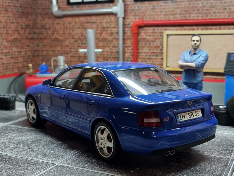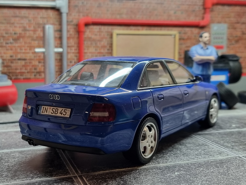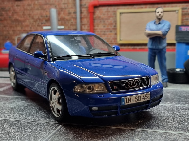 Audi S4 (B5) 2.7L BiTurbo - rok výroby vozu: 1998 - výrobce modelu: OttO Mobile - měřítko: 1:18 - materiál: resin - barva: modrá (Nogaro Blue) - limitovaná edice: 2000ks - vydání modelu: červen 2021 - číslo produktu: OT373 - jedná se o upravený model. Oproti originálu má kola z AUDI RS2 a upravenou SPZ. Audi S4 je sportovním protějškem sedanu A4. Tento model, který byl uveden na trh v roce 1991 na základě Audi 100, dosáhl již své šesté generace, což dokazuje úspěch tohoto modelu. S motorem 2.7 Biturbo V6 dorazila verze B5 v roce 1997. O dvacet let později zůstává tento sportovní sedan stejně atraktivní a stále táhne za volant mnoho řidičů. Střízlivé, pohodlné, výkonné a všestranné, krásné německé auto má kromě toho, že bude od roku 2021 „youngtimerem“, mnoho dalších výhod.