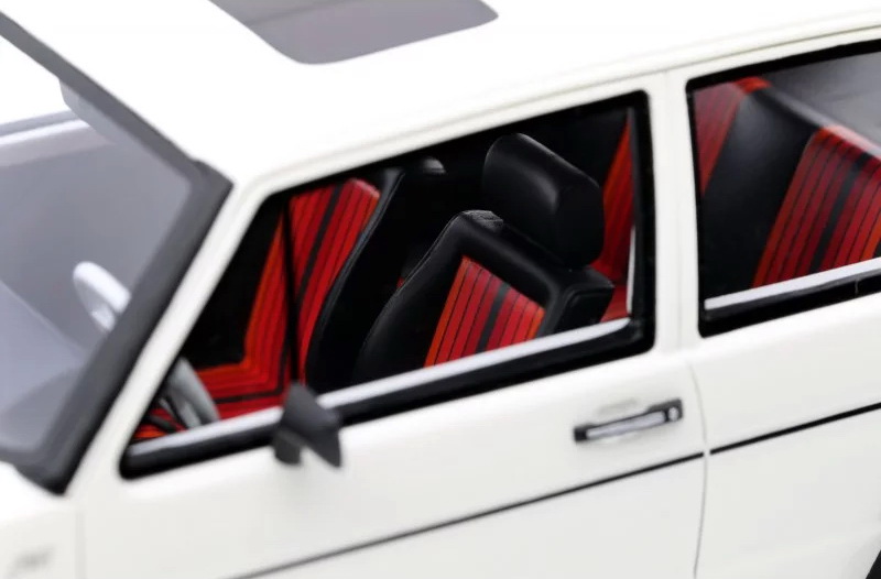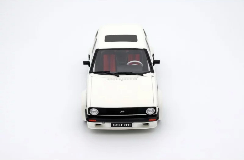 Volkswagen Golf 1 GTI ABT - rok výroby vozu: 1982 - výrobce modelu: OttO Mobile - měřítko: 1:18 - materiál: resin - barva: bílá (Alpine White) - limitovaná edice: 2000ks - vydání modelu: listopad 2023 - číslo produktu: OT1014 Volkswagen Golf 1 GTI ABT je ještě sportovnější verze dnes již legendárního modelu Golf 1 GTI, kterou vyvinul a vylepšil renomovaný německý úpravce ABT Sportsline. Tato verze přináší vyšší výkon, aerodynamické úpravy, vylepšený podvozek a sportovní designové prvky, které zdůrazňují dynamiku vozu. Golf 1 GTI ABT tak spojuje pohodlí a styl se sportovním výkonem, což činí z této verze atraktivní volbu pro nadšené řidiče, kteří chtějí více než jen běžný hatchback.