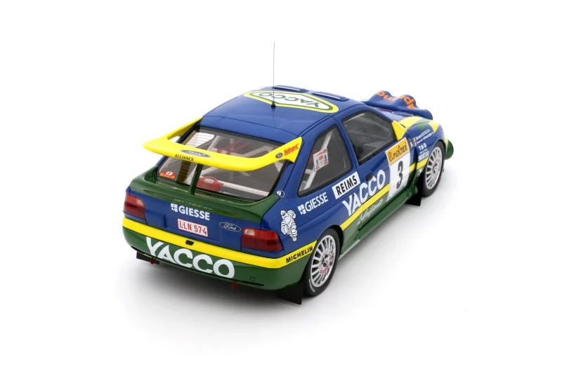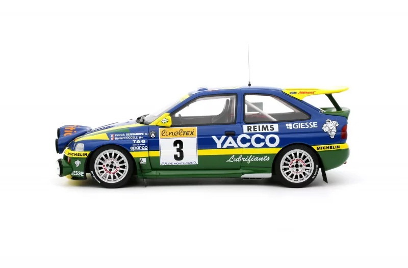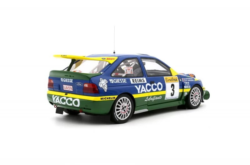 Ford Escort RS Cosworth - rok výroby vozu: 1996 - výrobce modelu: OttO Mobile - měřítko: 1:18 - materiál: resin - barva: #3 Rally Monte Carlo 1996 (Bernardini/Ocelli) "YACCO" - limitovaná edice: 3000ks - vydání modelu: listopad 2023 - číslo produktu: OT1028 .