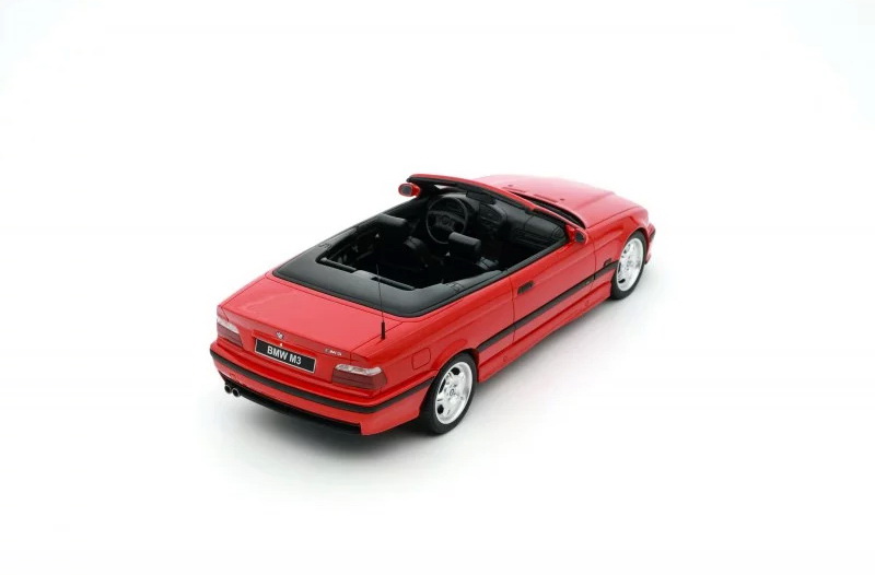 BMW E36 M3 Cabrio - rok výroby vozu: 1995 - výrobce modelu: OttO Mobile - měřítko: 1:18 - materiál: resin - barva: červená (Bright Red 308) - limitovaná edice: 2500ks - vydání modelu: listopad 2023 - číslo produktu: OT1048 V roce 1995, 3 roky po uvedení na trh, BMW znovu objevilo smyslnou M3 tím, že ji při faceliftu vybavilo 6-ti válcovým motorem s objemem zvýšeným na 3,2 litru. Její estetika zůstala relativně střízlivá, ale svými výkony předčila všechny své soupeře. S výkonem 321 koní byla M3 nejlepším sportovním vozem ve své kategorii a svou konkurenci dokázala porazit i cenou. S verzemi sedan, kupé a kabriolet se rychle stala ikonou v řadách sportovních BMW. Dnes je tato generace vyhledávána pro svou všestrannost a kvality, které jsou stále aktuální.