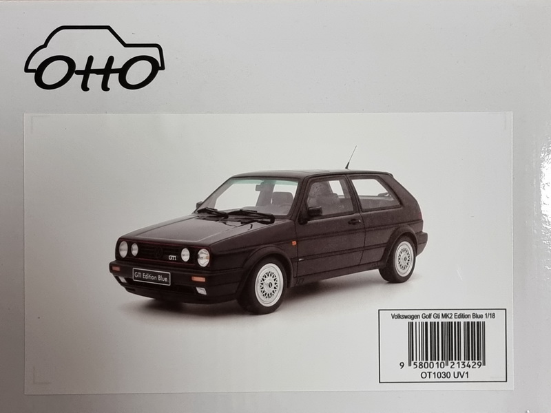 Volkswagen Golf 2 GTi Edition Blue - rok výroby vozu: 1991 - výrobce modelu: OttO Mobile - měřítko: 1:18 - materiál: resin - barva: modrá (Moonlight Blue) - limitovaná edice: 2500ks - vydání modelu: prosinec 2023 - číslo produktu: OT1030 Tento Volkswagen Golf je velmi speciální, protože jde o limitovanou edici uvedenou na trh v roce 1991 a vyrobený v nákladu 2100 kusů (1749 pro Německo a zbytek pro Švýcarsko a Rakousko). Tento model vyčnívá z davu díky střešnímu oknu, kolům BBS, jedinečnému koženému interiéru „Mauritius blau“ a především exkluzivní barvě Moonlight Blue!