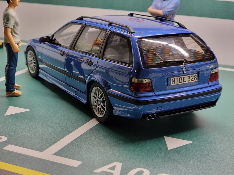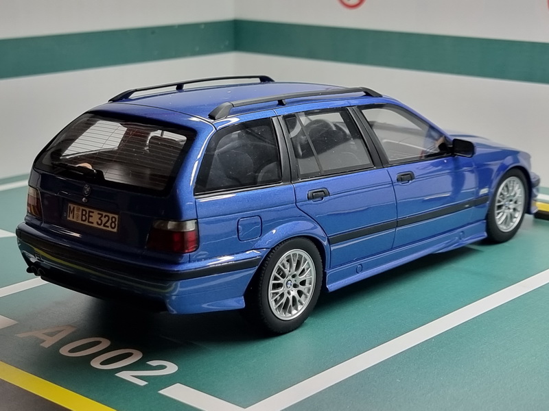 BMW E36 Touring 328I M Packet Tuning - rok výroby vozu: 1997 - výrobce modelu: OttO Mobile - měřítko: 1:18 - materiál: resin - barva: modrá (Estoril Blue) - limitovaná edice: 3000ks - vydání modelu: červen 2021 - číslo produktu: OT358 - jedná se o upravený model. Oproti originálu má kola z BMW E36 Compact a upravenou SPZ. BMW E36, které bylo uvedeno na trh již v roce 1990, je třetí generací legendární řady 3 od bavorského výrobce. O pět let později byla vydána verze kombi E36. Přechod do kategorie „rodinný vůz“ mu přesto neubral na výkonu ani na kouzlu. Verze 328i má totiž stále 193 koní! Verze kombi se vyráběla v letech 1995 až 1999, zatímco výroba sedanu pokračovala až do 21. století, i když jeho následovník (E46) byl již na trhu!