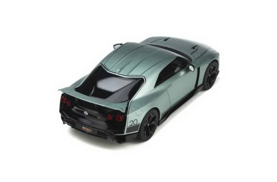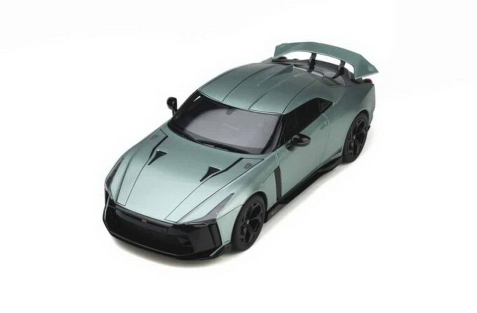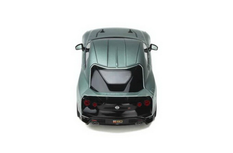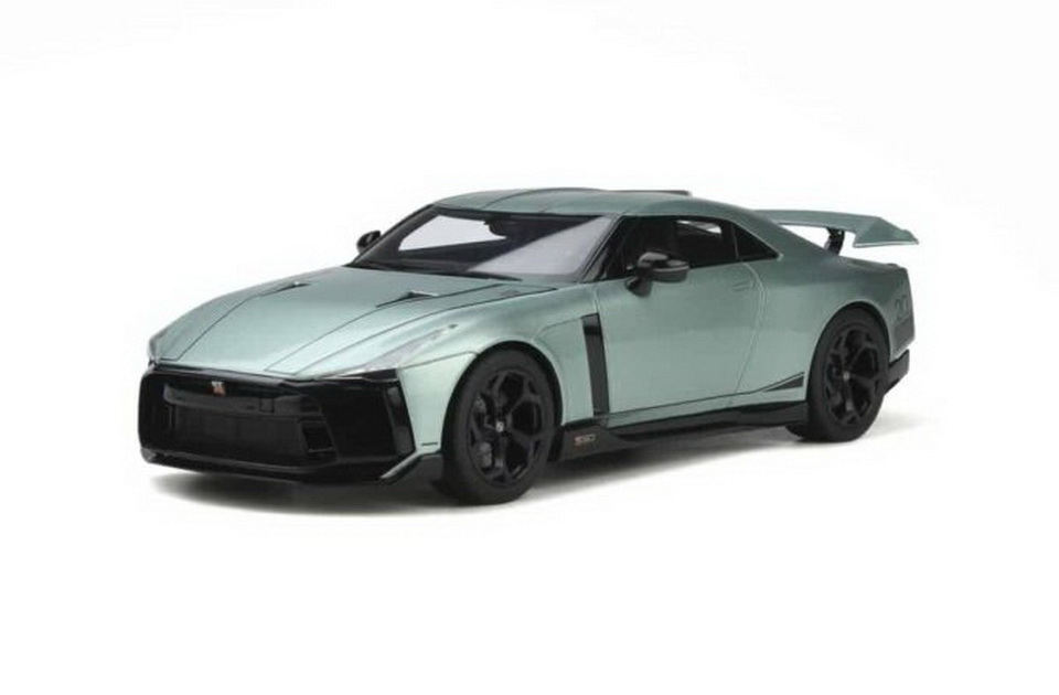 Nissan GT-R50 by Italdesign - rok výroby vozu: 2021 - výrobce modelu: GT Spirit - měřítko: 1:18 - materiál: resin - barva: zelená (Green) - limitovaná edice: 1100ks - vydání modelu: n/a - číslo produktu: GT284 Nissan GT-R50 od Italdesign byl původně představen jako koncepční vůz, který nebyl určen pro výrobu. Nissan se rozhodl vyrobit padesát z nich na oslavu 50. výročí označení GT-R. Pohon sdílí s GT-R Nismo, ale má výkon 721 koní a točivý moment 780 Nm. Motor dostal velká turba, sdílená s GT-R specifikace GT3, odolnější klikový hřídel, písty a ojnice, upravený systém sání a mnoho dalších úprav. GT-R50 se standardně dodává s karbon-keramickými brzdami a na 21" karbonových kolech. Karoserie je převážně z hliníku a uhlíkových vláken. Základní ceníková cena byla stanovena na 990 000 EUR (necelých 25 milionů korun)
