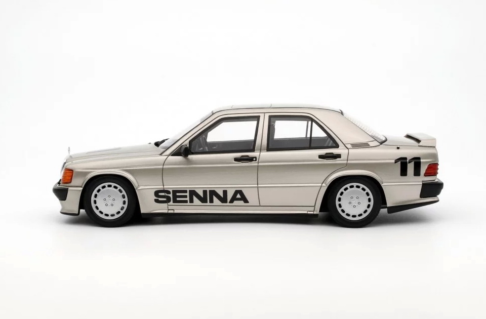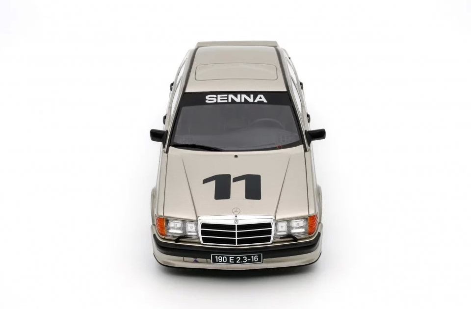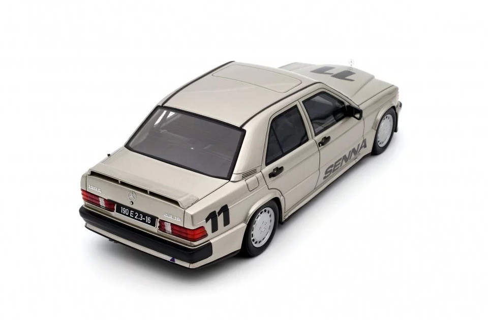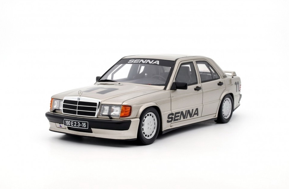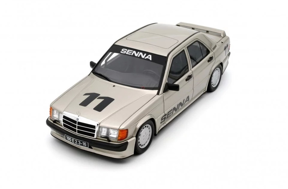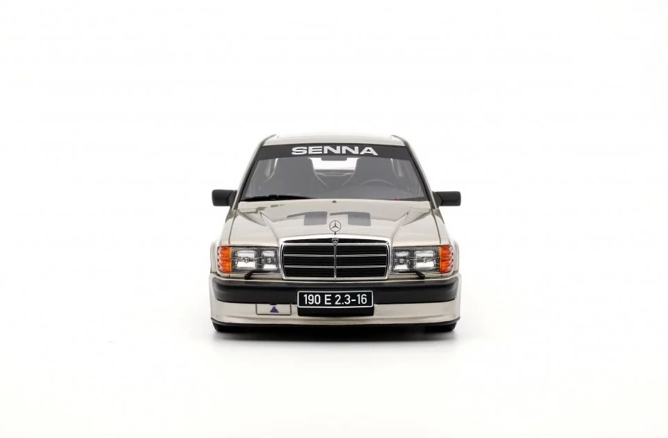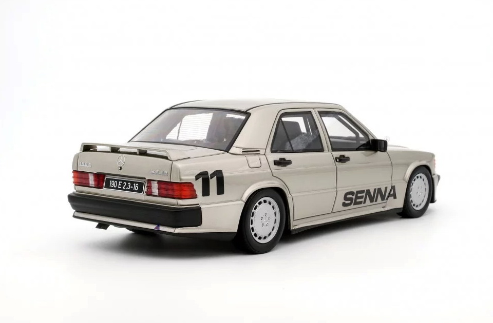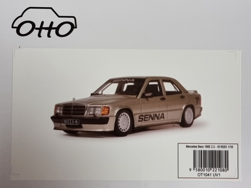 Mercedes-Benz W201 190E 2.3-16 - rok výroby vozu: 1984 - výrobce modelu: OttO Mobile - měřítko: 1:18 - materiál: resin - barva: stříbrná (Smoke Silver Metallic) - limitovaná edice: 2000ks - vydání modelu: březen 2024 - číslo produktu: OT1041 V roce 1984 využil Mercedes otevření nového okruhu Nürburgring k marketingové akci na propagaci svého nového vozu 190E. V "Závodu šampionů" se představilo dvacet hvězdných jezdců dne, včetně Nikiho Laudy, Alaina Prosta, Jamese Hunta, Sira Stirlinga Mosse, Jacka Brabhama, Ayrtona Senny a mnoha dalších. Závodu nepředsedal nikdo jiný než Juan Manuel Fangio! Vozy Mercedes-Benz 190E 2.3-16 W201 byly všechny stejné, s malým závodním balíčkem obsahujícím ochranný rám a specifické číslo pro každého řidiče. Niki Lauda dlouho vedl, ale nakonec to byl mladý Ayrton Senna, kdo vyhrál tento propagační závod! Tento hazard se Mercedesu vyplatil a 190E se rychle stal vlajkovým modelem.