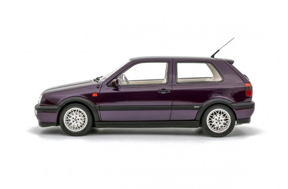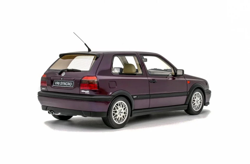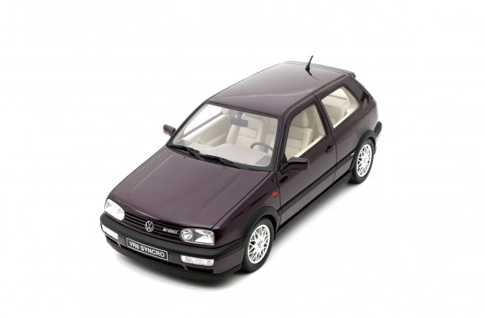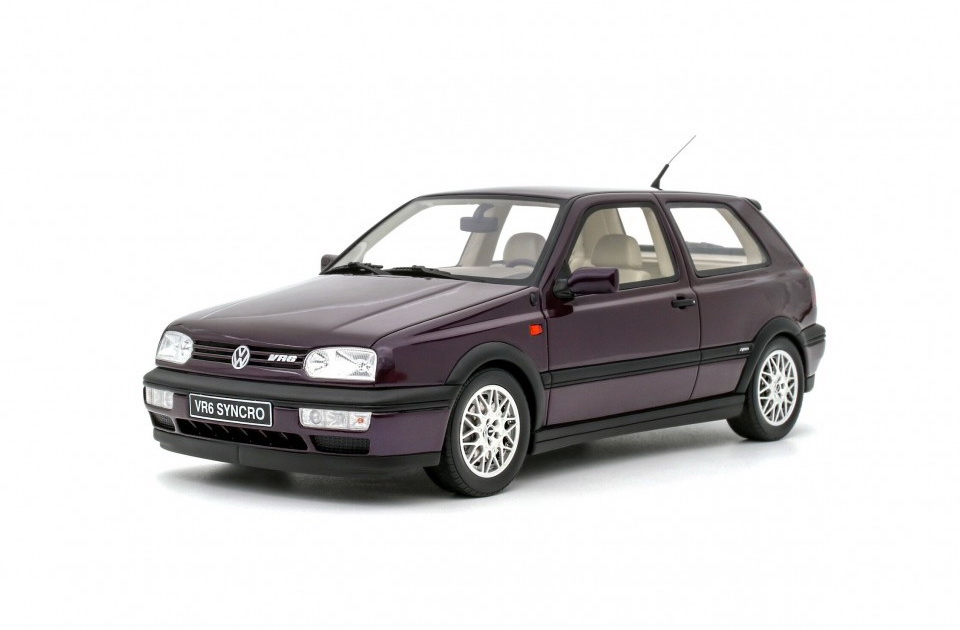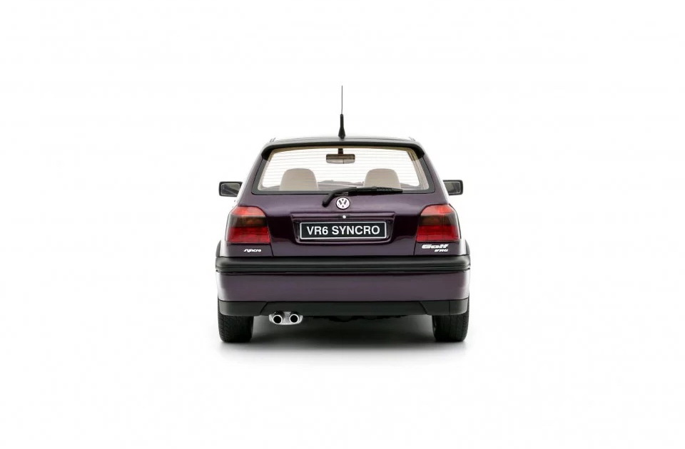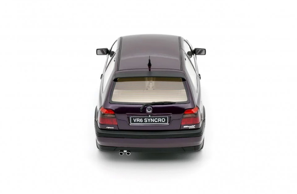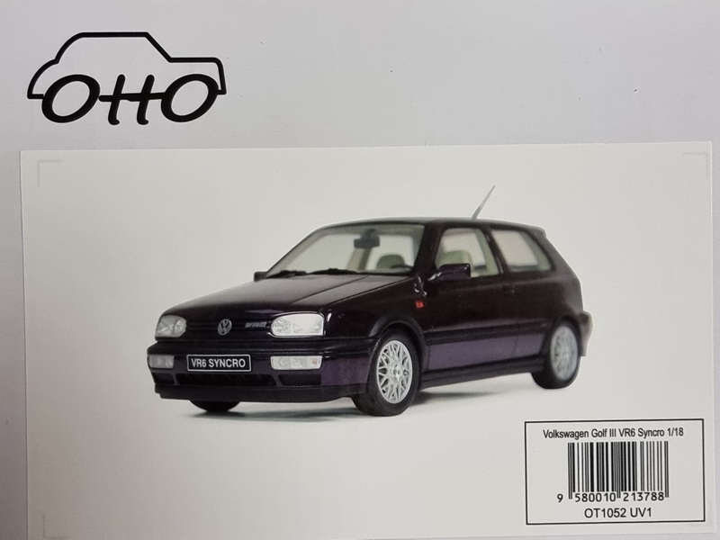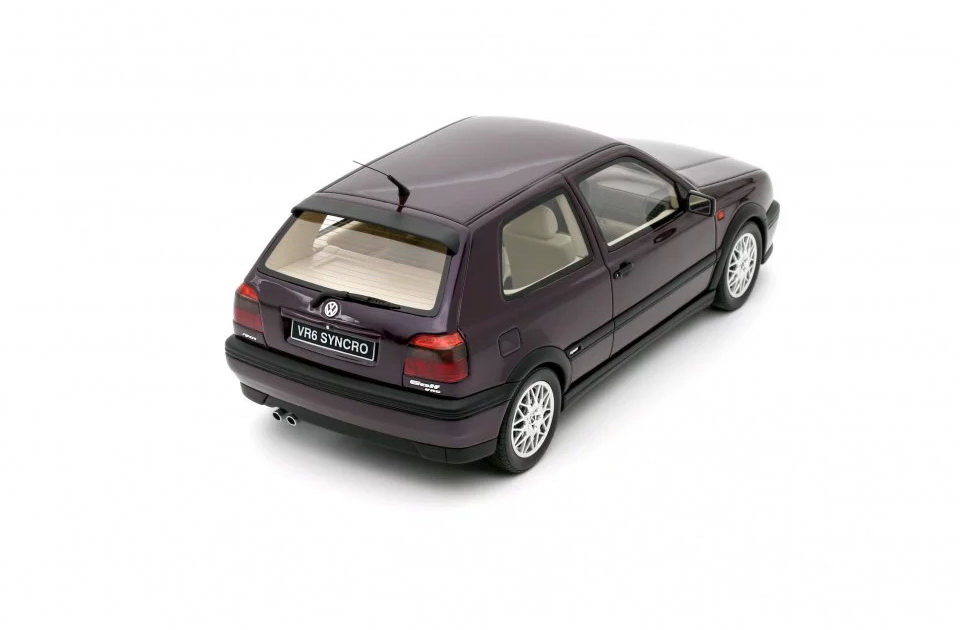 Volkswagen Golf 3 VR6 Syncro - rok výroby vozu: 1995 - výrobce modelu: OttO Mobile - měřítko: 1:18 - materiál: resin - barva: fialová (Dark Violet Perleffekt) - limitovaná edice: 2500ks - vydání modelu: březen 2024 - číslo produktu: OT1052 Syncro je „ultimátní“ verzí Golfu III VR6. Z Corrada VR6 zdědil motor o objemu 2861cc. I tato speciální verze těží z pohonu všech čtyř kol. Dosahuje 190 koní a umí dosáhnout rychlosti až 225 km/h. VR6 Syncro se začal prodávat v roce 1993 a provázel třetí generaci Golfu až do jeho zániku v roce 1997.