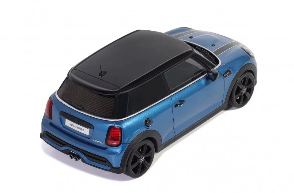Mini Cooper S - rok výroby vozu: 2021 - výrobce modelu: OttO Mobile - měřítko: 1:18 - materiál: resin - barva: modrá (Island Blue + White Stripes) - limitovaná edice: 999ks - vydání modelu: březen 2024 - číslo produktu: OT982 Od 60. let minulého století je Mini Cooper nejprodávanějším a nejikoničtějším vozem ze Spojeného království. Od svého převzetí BMW v 90. letech 20. století značka stále září. Ve skutečnosti je pravděpodobně původcem „neo-retro“ stylu, který se v současnosti stává tak módním. Cooper S je tu, aby znovu potvrdil sportovní charakter značky a jejích nových modelů. Se svými pruhy na kapotě a speciálními koly nezůstane bez povšimnutí!