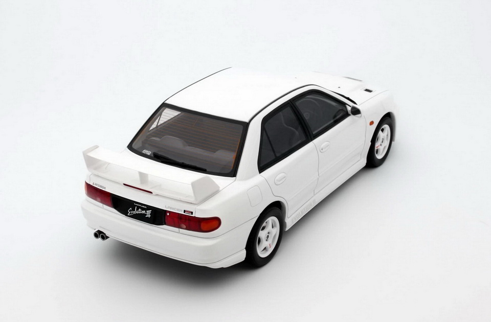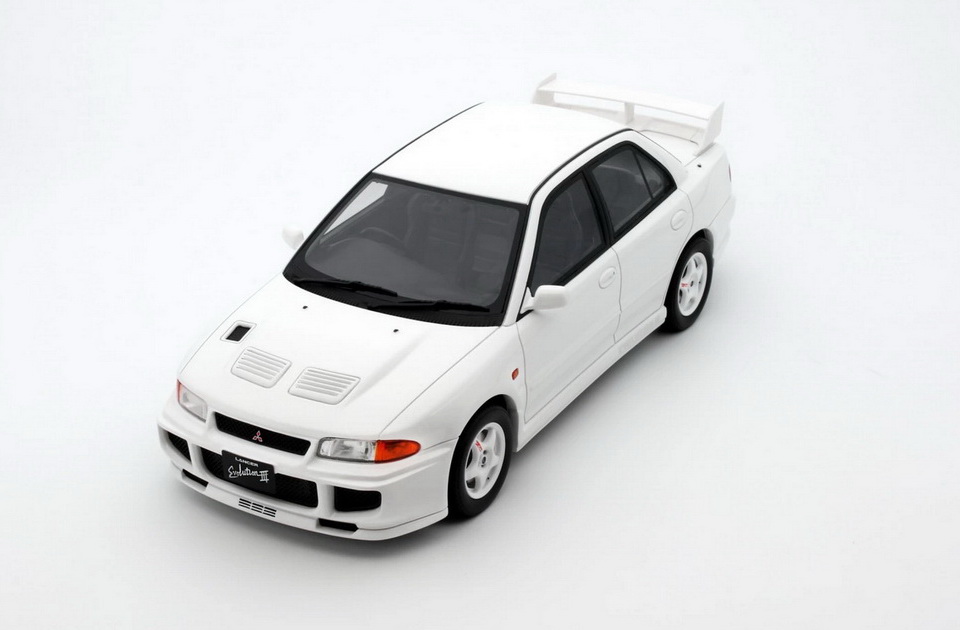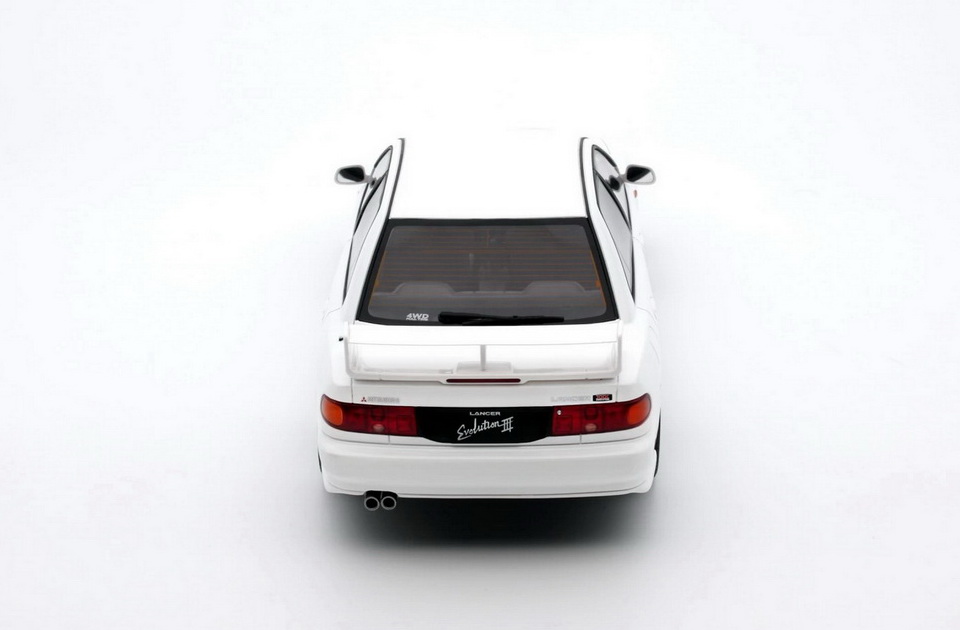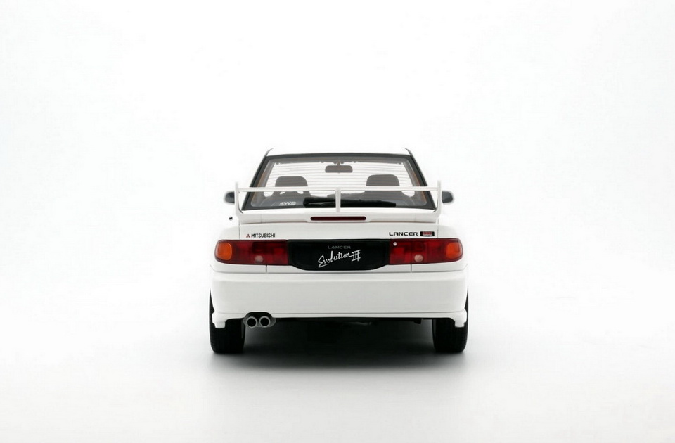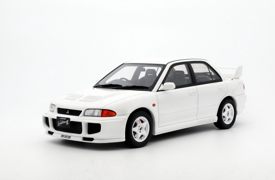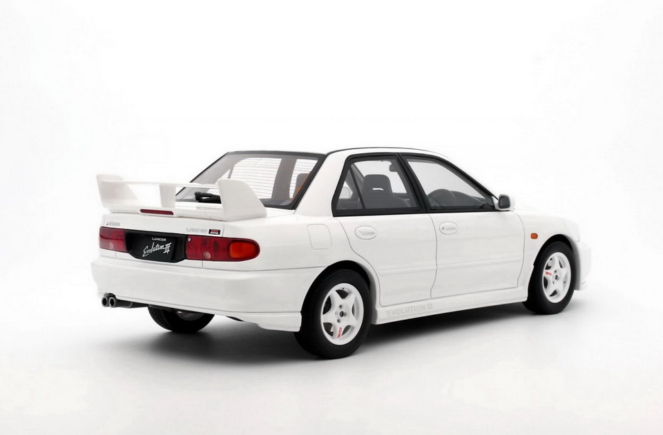 Mitsubishi Lancer EVO III - rok výroby vozu: 1995 - výrobce modelu: OttO Mobile - měřítko: 1:18 - materiál: resin - barva: bílá (Scotia White W83) - limitovaná edice: 3000ks - vydání modelu: červen 2024 - číslo produktu: OT1065 Když přemýšlíme o japonských automobilech z 90. let a počátku 20. století, automaticky se nám vybaví Subaru Impreza a její nejlepší nepřítel, Mitsubishi Lancer! „Evo“ jsou sportovní verze sedanu Mitsubishi. Od roku 1992 a více než 10 let hájili barvy japonské značky na stupních mistrovství světa v rally. V letech 1992 až 2005 Mitsubishi získalo 4 tituly řidičů a 1 konstruktérský titul! V roce 1996 s EVO III začal tento úspěšný příběh prvním titulem, který získal finský Tommi Mäkinen. Vítězství, které díky přeplňovanému motoru nevyhnutelně přilákalo mnoho závodních nadšenců do produkční verze s výkonem 270 koní. Vůz, jehož aerodynamika byla ve srovnání s EVO II zcela přepracována.