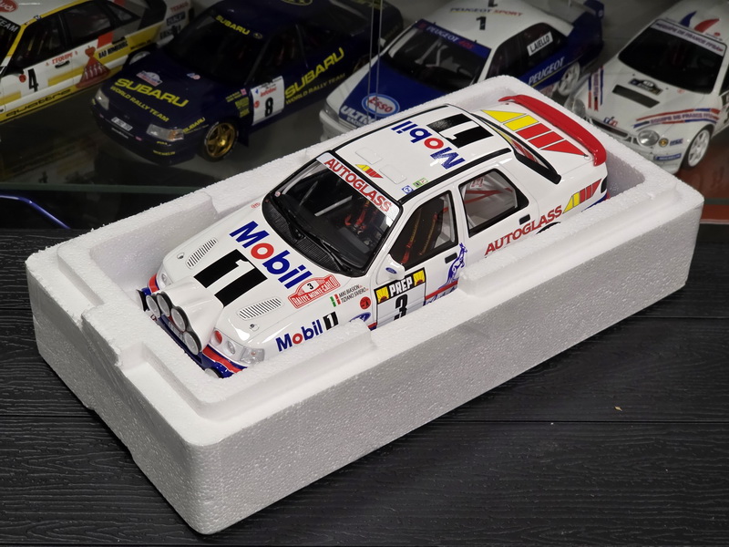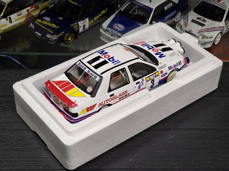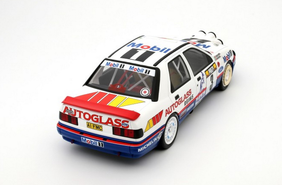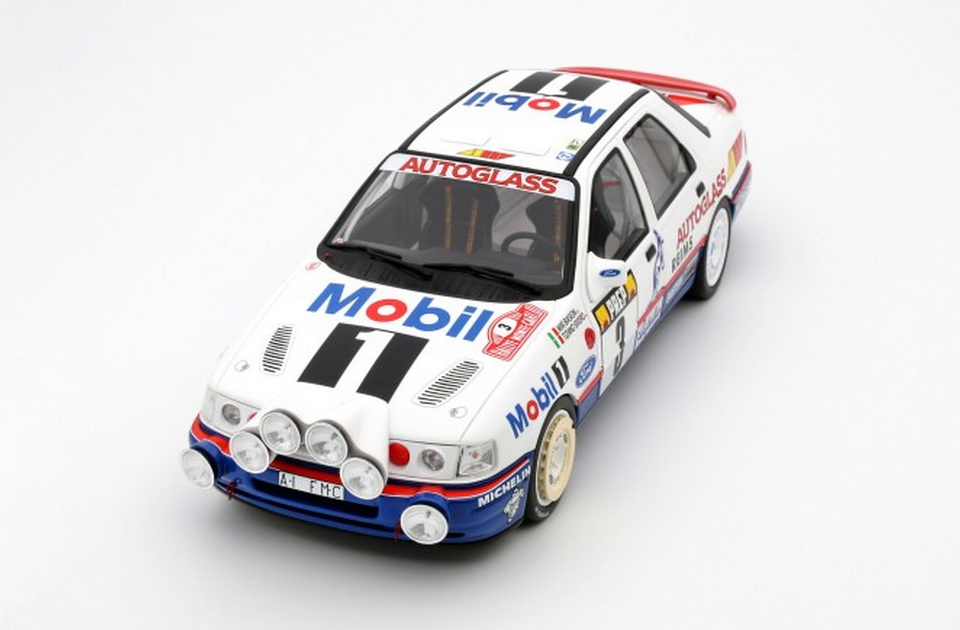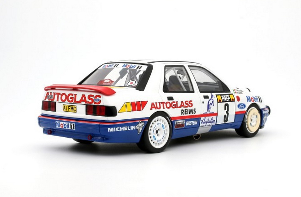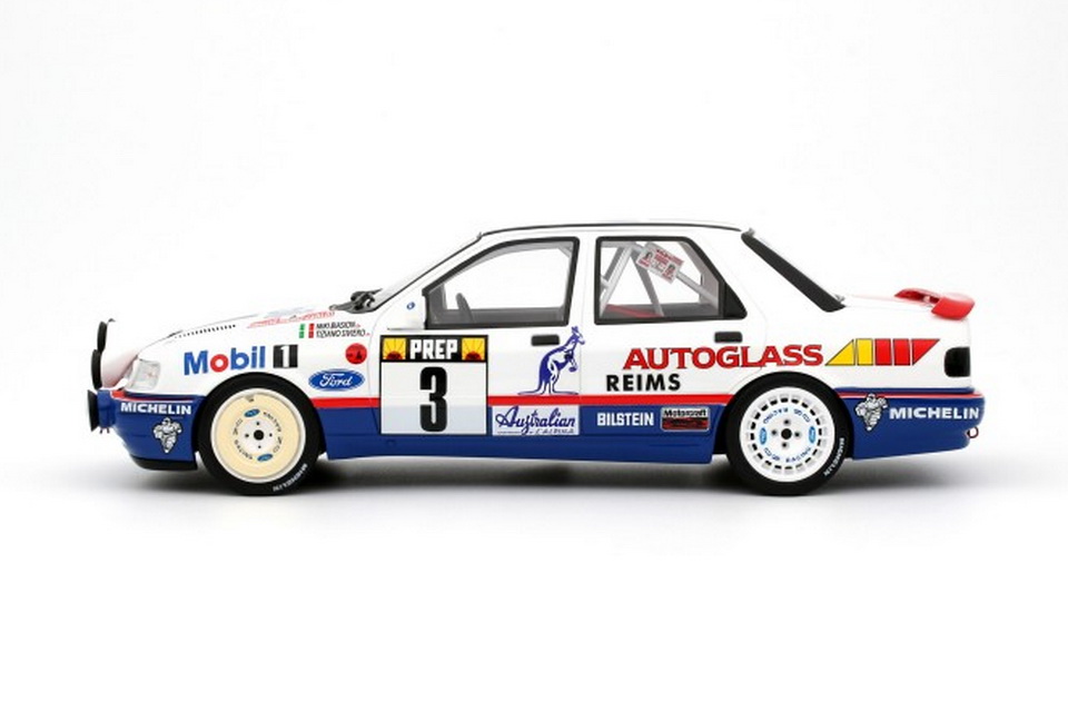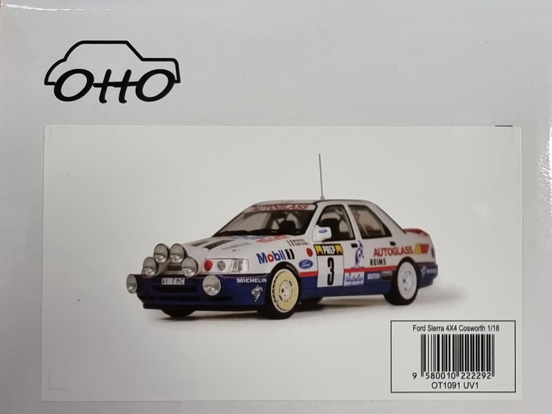 Ford Sierra Cosworth 4x4 Rally Monte Carlo - rok výroby vozu: 1992 - výrobce modelu: OttO Mobile - měřítko: 1:18 - materiál: resin - barva: Rally Monte Carlo #3 Miki Biasion - limitovaná edice: 999ks - vydání modelu: září 2024 - číslo produktu: OT1091 Jako téměř každou sezónu začalo mistrovství světa v rally 1992 prestižní Rallye Monte Carlo. Ford nasadil dvojici jezdců: Françoise Delecoura a Mikiho Biasiona. Ital, bývalý pilot Lancie, debutoval se svým novým týmem na rally, kterou již dvakrát vyhrál (v letech 1987 a 1989). V cíli skončil „jen“ osmý, obklopený dvěma oficiálními Nissany Sunny GTI-R, Delecour těsně mimo stupně vítězů. Na počest Biasiona vyhrála rallye Lancia.