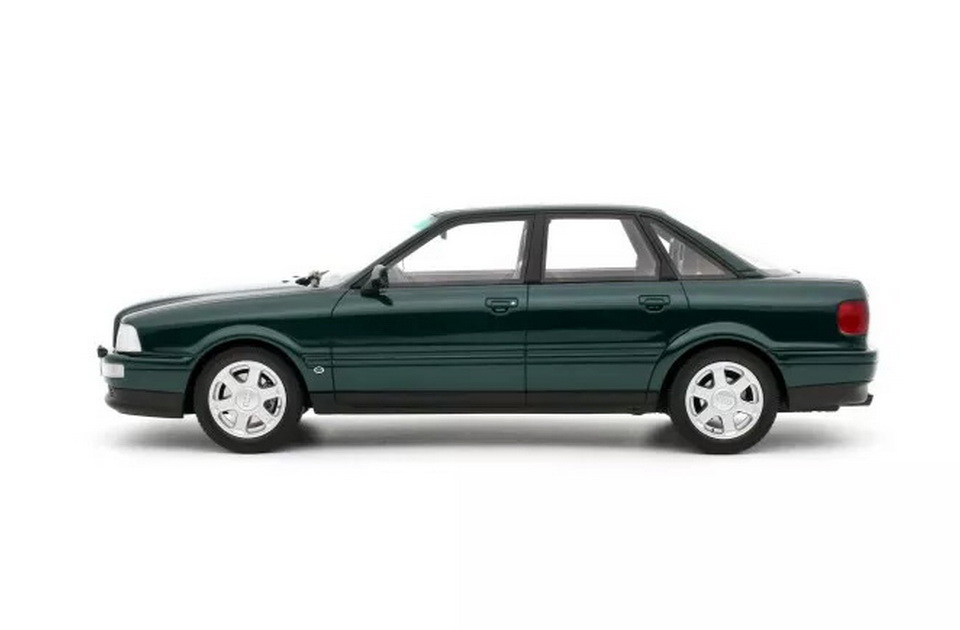Audi S2 Sedan - rok výroby vozu: 1993 - výrobce modelu: OttO Mobile - měřítko: 1:18 - materiál: resin - barva: zelená (Emerald Green M6) - limitovaná edice: 2000ks - vydání modelu: září 2024 - číslo produktu: OT1101 S2 je sportovní variantou Audi 80, nejlépe známá ve své verzi Coupé, ale dostupná také jako sedan a kombi („Avant“). Od svého bavorského rivala E30 se S2 odlišuje legendárním systémem „Quattro“ (pohon všech čtyř kol) a výkonným 5-válcovým motorem. Vyniká také působivými jízdními vlastnostmi, i za deštivého počasí! Verze sedanu Audi S2 je ze všech tří nejvzácnější. Výroba byla omezena na pouhých 306 kusů!