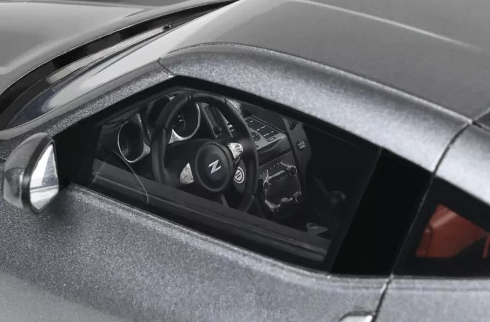 Nissan 370 Z - rok výroby vozu: 2009 - výrobce modelu: OttO Mobile - měřítko: 1:18 - materiál: resin - barva: šedá (Gun Grey KAD) - limitovaná edice: 2000ks - vydání modelu: prosinec 2024 - číslo produktu: OT465 Tento Nissan 370Z je důstojným nástupcem modelové řady Nissan Fairlady a představuje evoluci modelu 350Z. V listopadu 2008 byl představen na autosalonu v Los Angeles a zároveň se objevil ve hře Need for Speed. Díky zkrácenému podvozku Z34 je tento japonský sportovní vůz lehčí než jeho předchůdce. Uvedený na trh v roce 2009, označení 370Z není náhodné – stejně jako u předchozích modelů Fairlady číslo „370“ odkazuje na zdvihový objem motoru, zatímco „Z“ značí jeho příslušnost k linii „Fairlady Z“. Toto kupé je vybaveno 3,7litrovým vidlicovým šestiválcem o výkonu přibližně 325 koní.