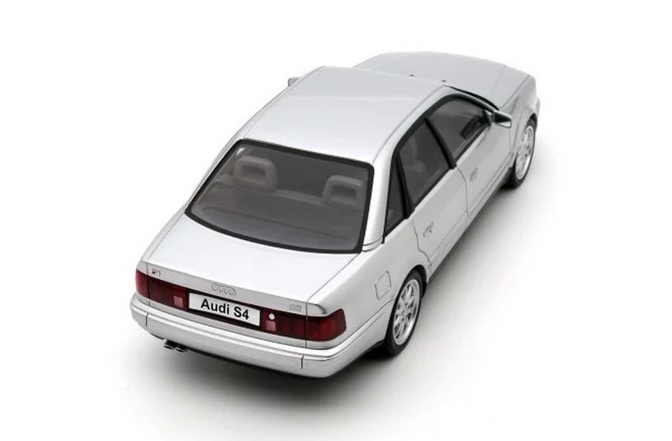 Audi S4 C4 4.2 V8 - rok výroby vozu: 1993 - výrobce modelu: OttO Mobile - měřítko: 1:18 - materiál: resin - barva: stříbrná (Crystal Silver C6) - limitovaná edice: 2000ks - vydání modelu: únor 2025 - číslo produktu: OT464 C4 je první generace sportovního luxusního sedanu Audi, modelu S4. Byl vyráběn v letech 1991 až 1994. Audi S4 je založené na karoserii modelu 100 C4. Přední část byla přepracována, aby působila sportovnějším dojmem. Blatníky jsou o něco širší než u modelu 100. Hlavní rozdíl je však pod kapotou. „Základní“ verze má 5válcový motor 2.2 turbo s výkonem 220 koní. Ve svém posledním roce v katalogu značky získává S4 velký motor V8 s výkonem 230 koní. Celkem bylo za více než tři roky vyrobeno přes 10 000 kusů Audi S4 C4. Sportovní směr Audi v 90. letech nadále přitahuje nadšence.