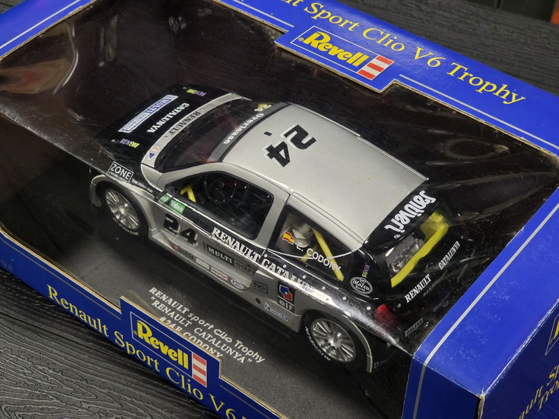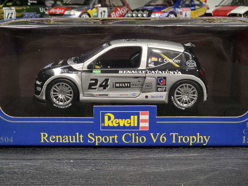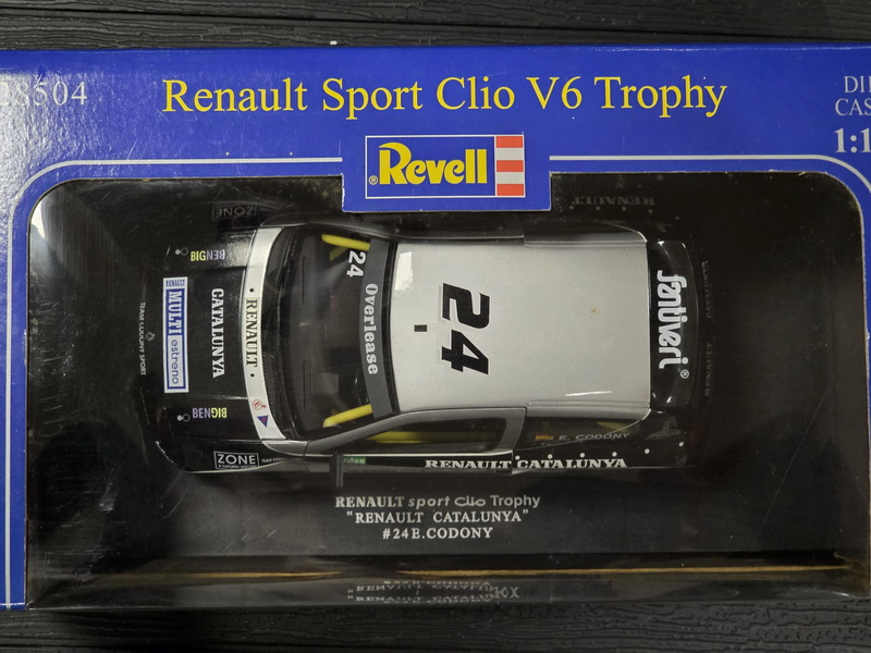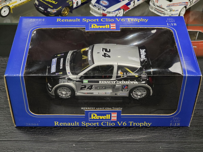 Renault Sport Clio V6 Trophy 2002 - rok výroby vozu: 2002 - výrobce modelu: Revell - měřítko: 1:18 - materiál: kovový model s otevíratelnými díly - barva: #24 B. Codony Renault Catalunya - limitovaná edice: n/a - vydání modelu: n/a - číslo produktu: 28504 .